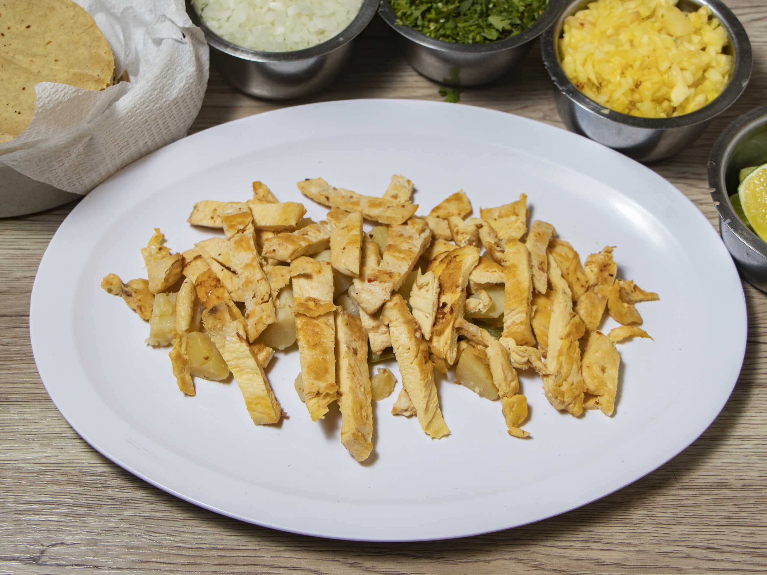 Cebolla, pimiento morrón, champiñón, queso y tortillas.