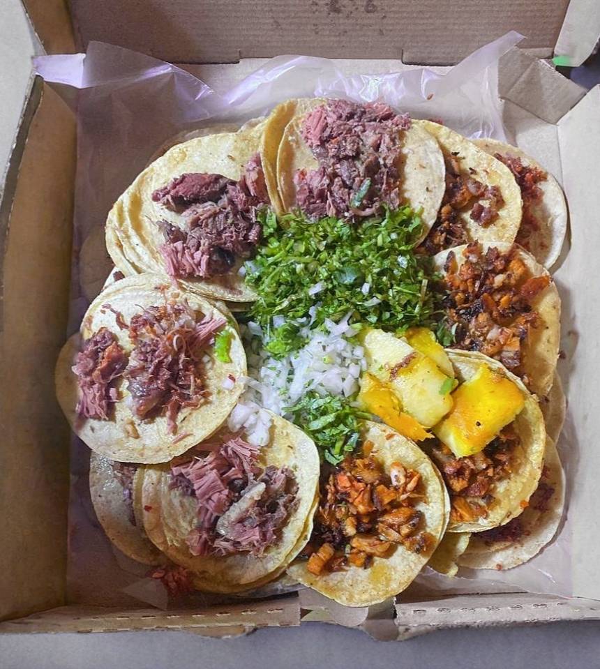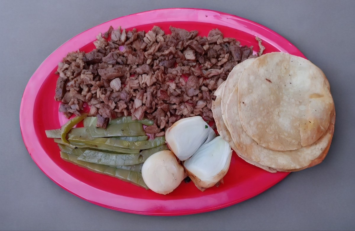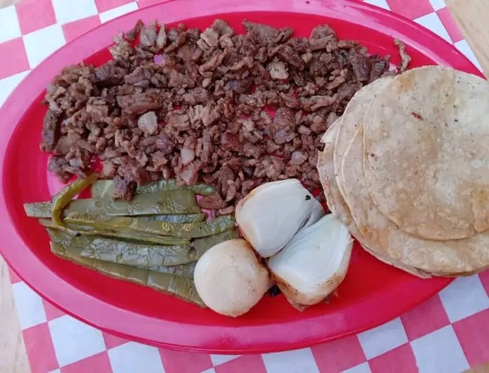Incluye cebollitas, nopales, salsita, verdura, piña y tortillas.
