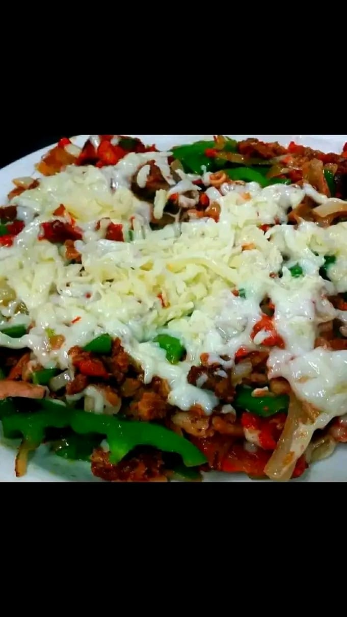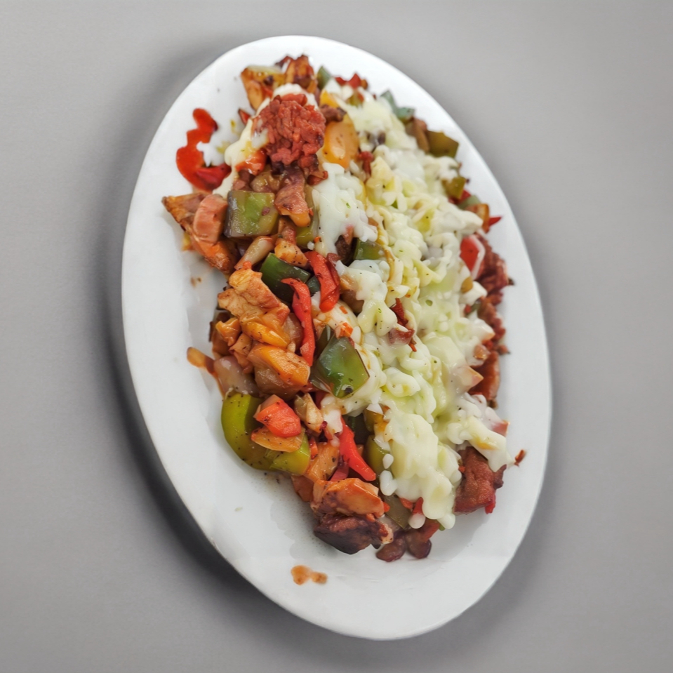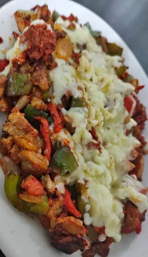 Poblano, cebolla, champiñón, nopales, piña y queso.