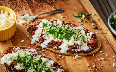 Acompañada con longaniza, cebollitas, jitomate y aguacate.