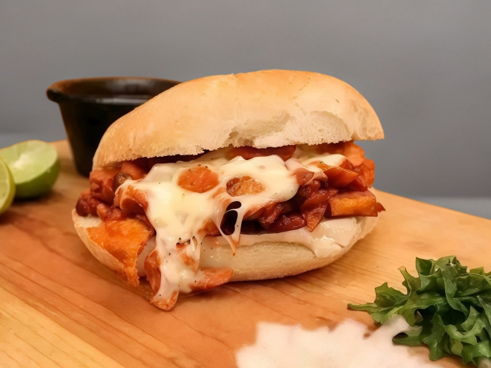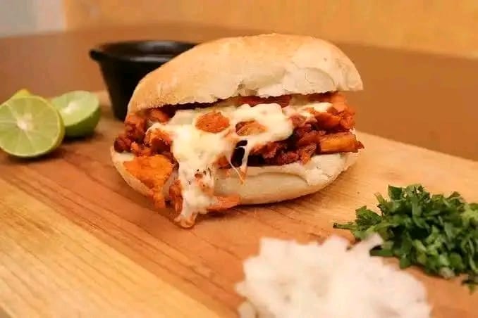 Torta de Pastor con mayonesa, jitomate, aguacate y queso (Telera)