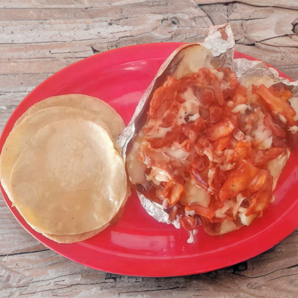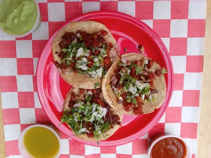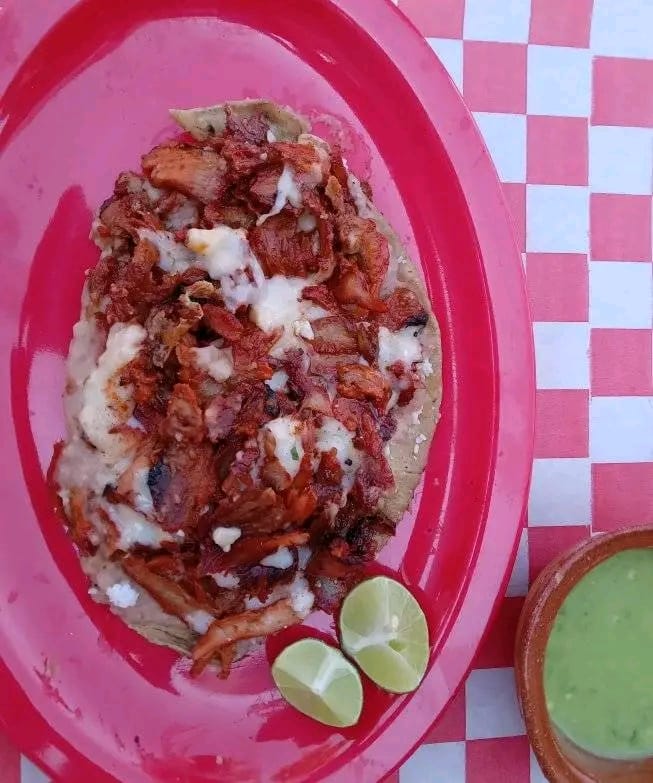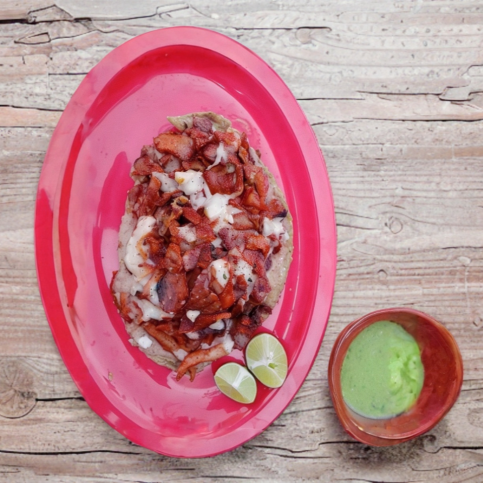 Suadero con cebolla, cilantro y salsa morita (orden personal)