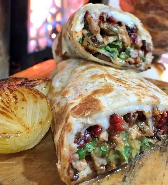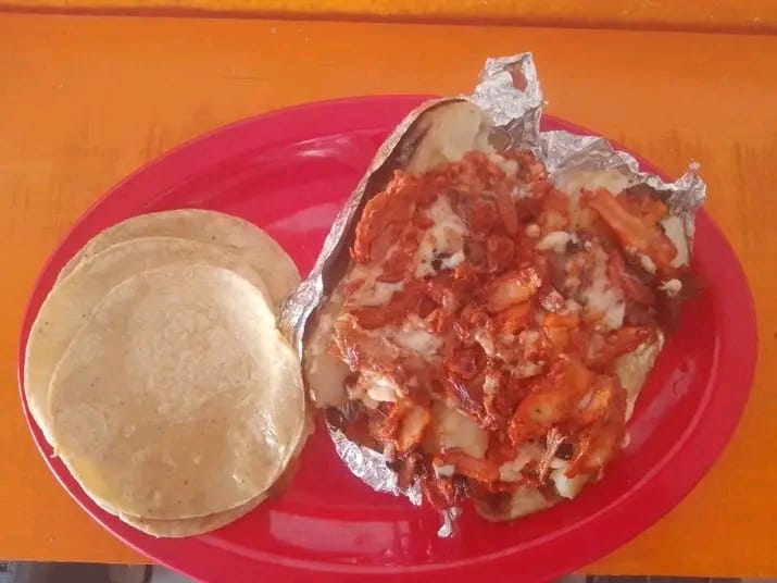 Bistec, pastor, tocino, poblano, cebolla, aguacate y queso.