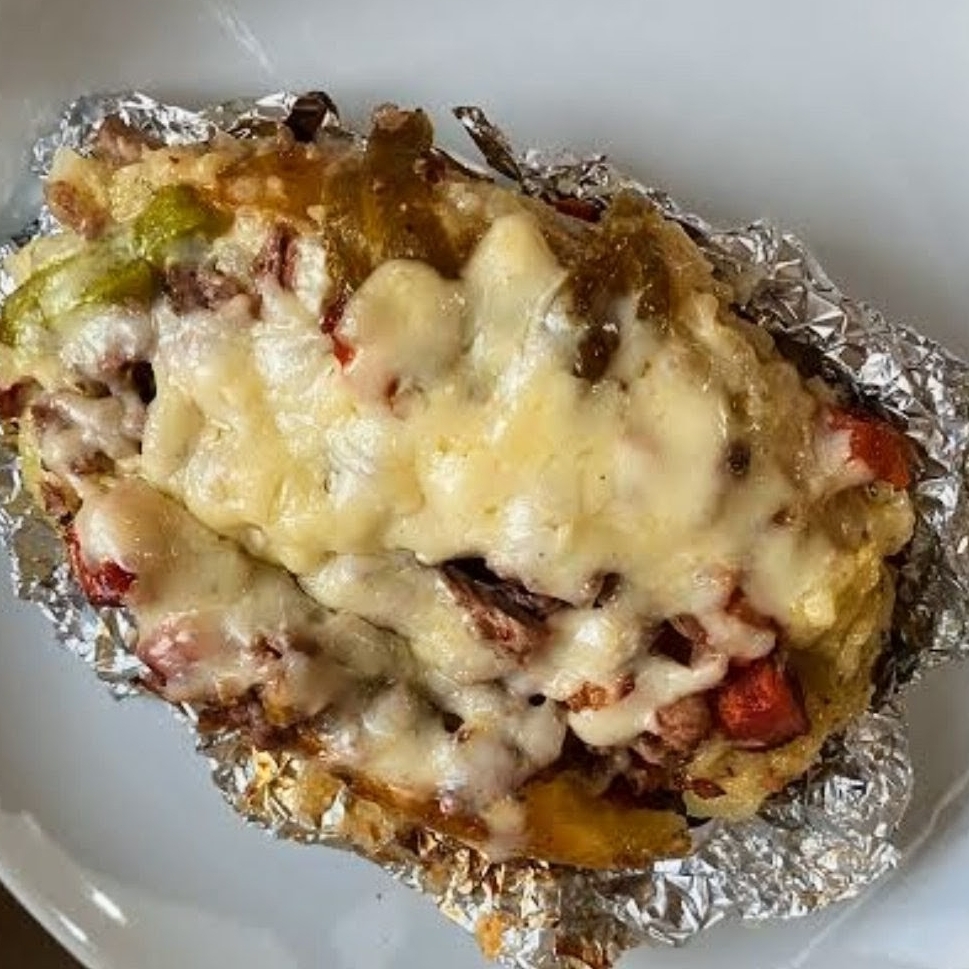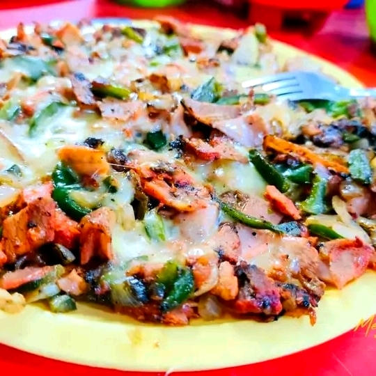 Alambre con carne a elegir, pimientos, cebolla y queso Oaxaca.