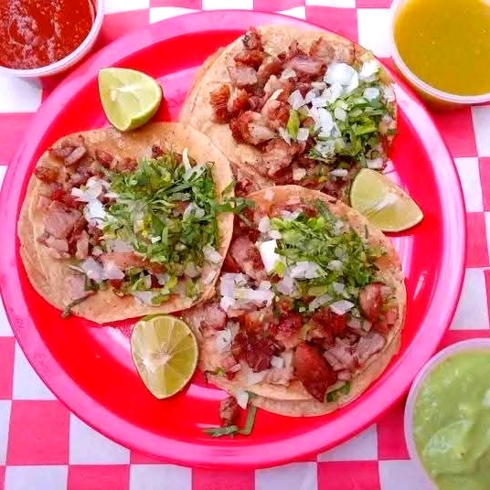 Típicos tacos de carne de cerdo marinada al pastor (Promoción 2x1).