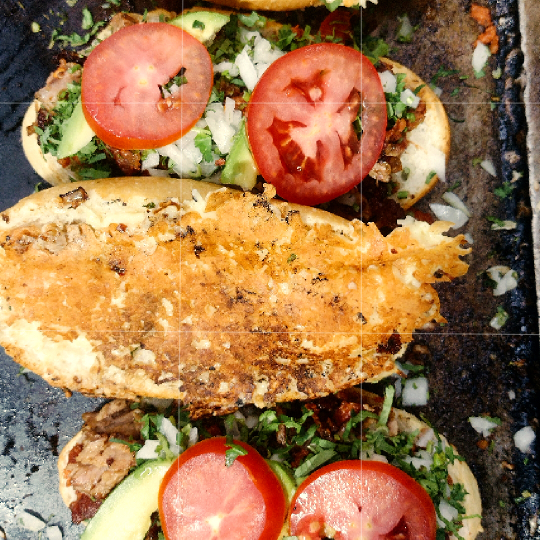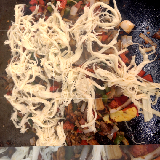 Chile morrón, cebolla, carne al pastor, suadero, longaniza, queso fundido y con 10 tortillas de maíz. (Porción para 3 personas)