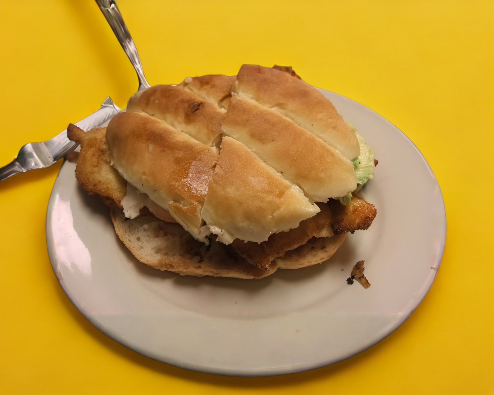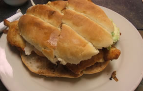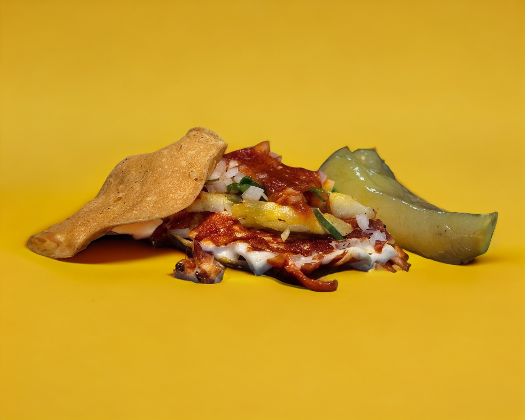 Porción personal: 1 bolillo relleno de carne al pastor verduras y queso oaxaca