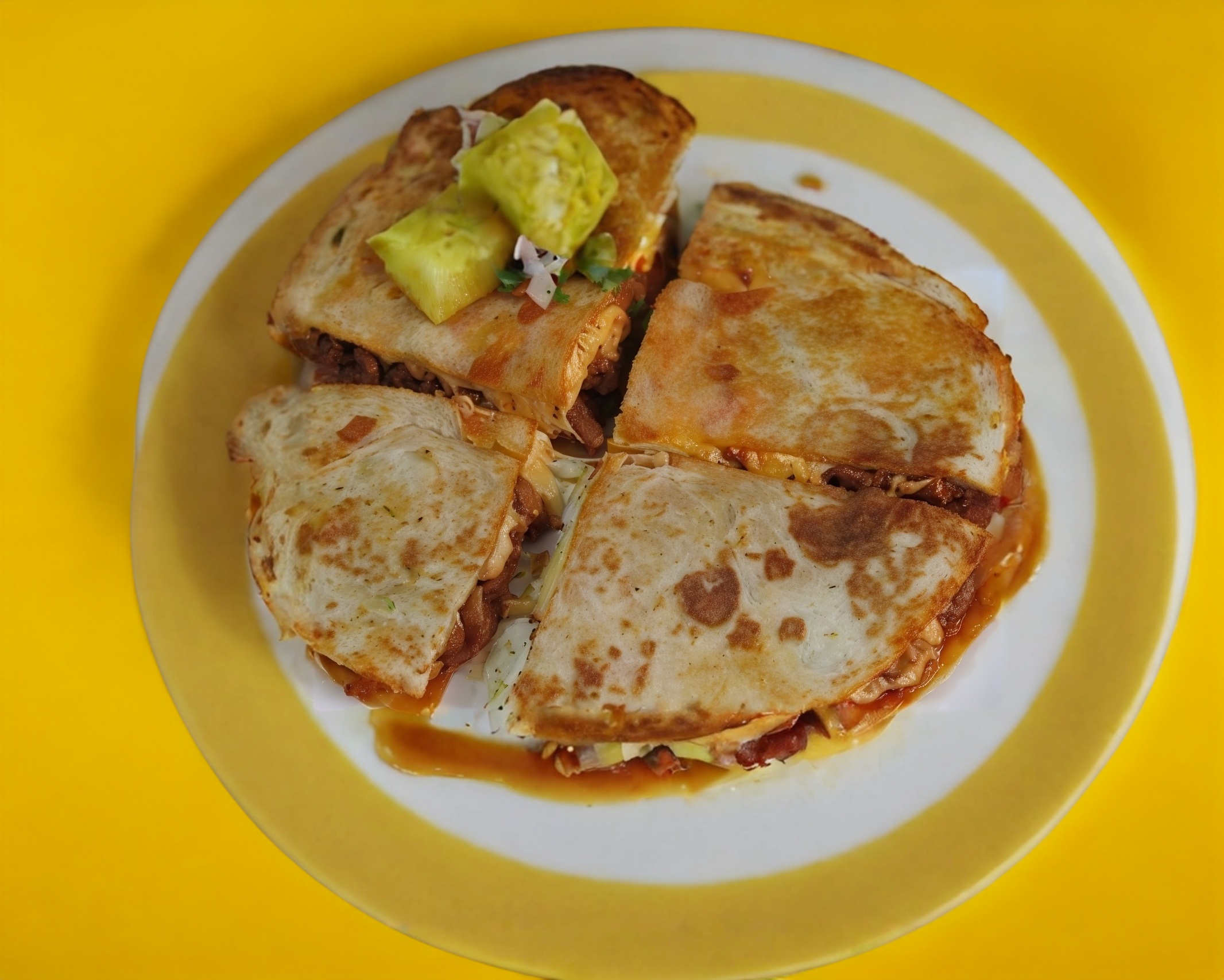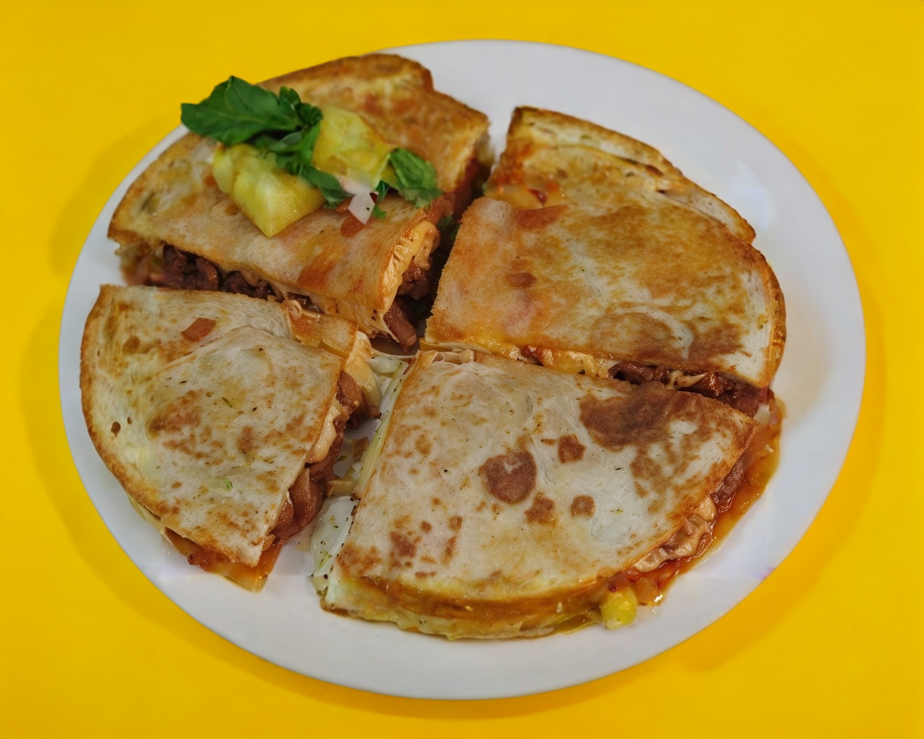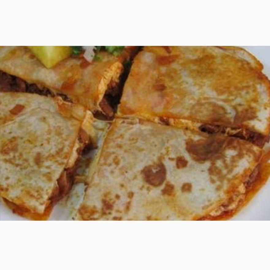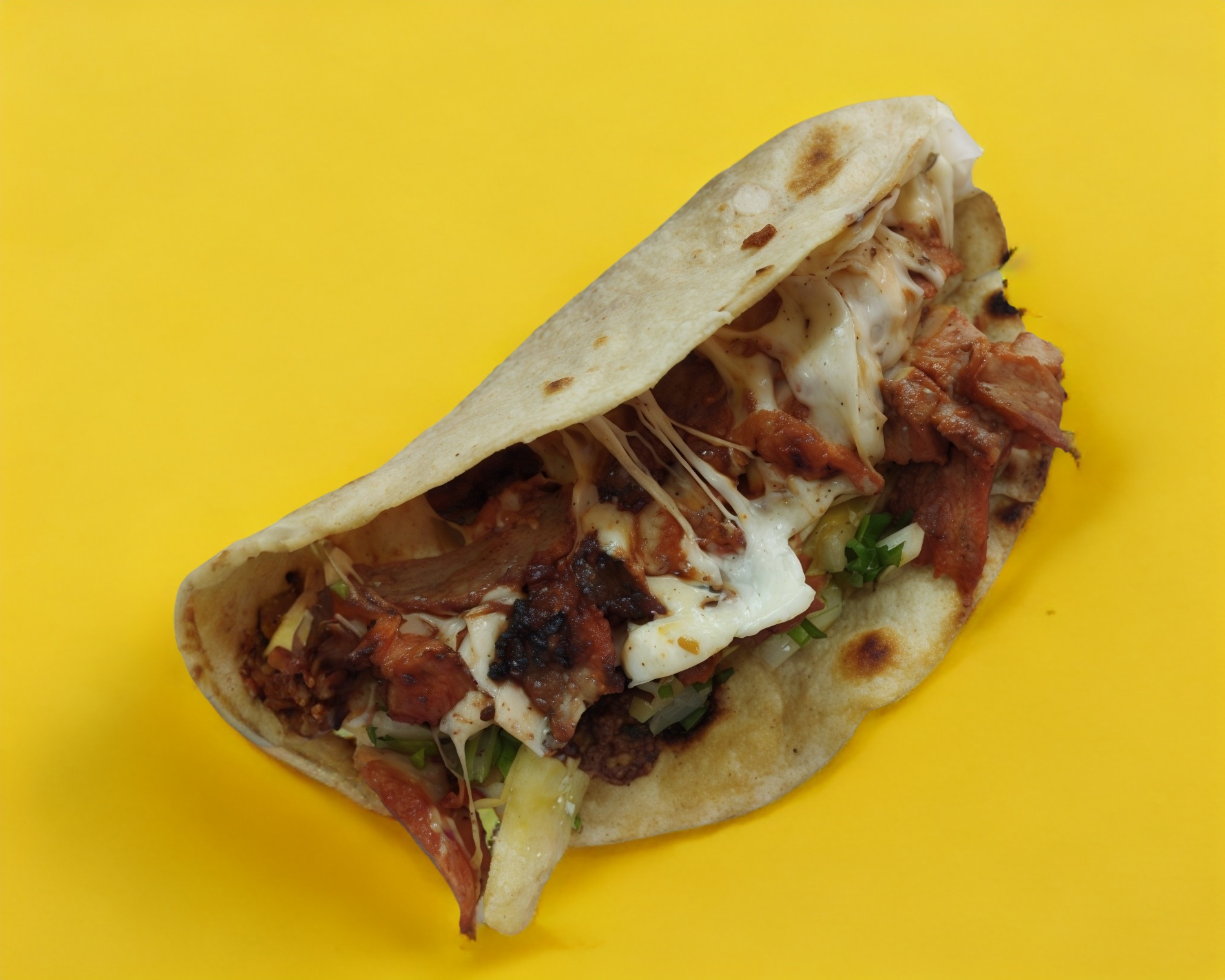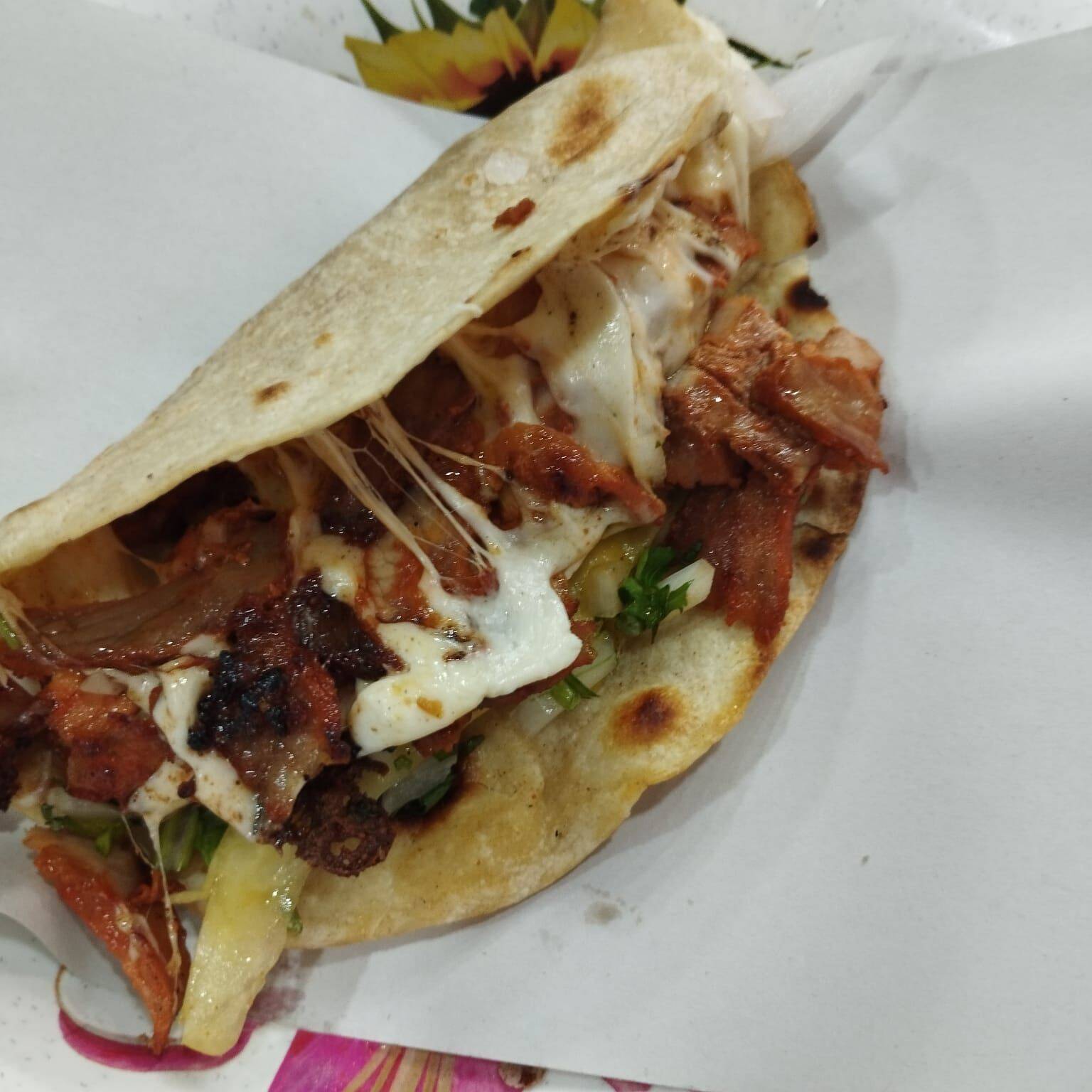 Porción personal: 2 tortillas de harina con carne al pastor queso verduras y salsa