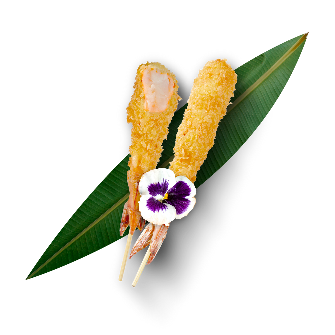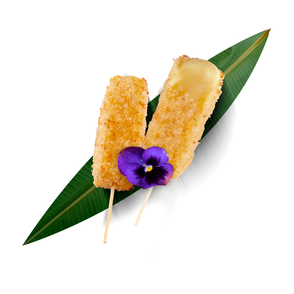 Brochetas de camarón y queso empanizado. (2 pzas).