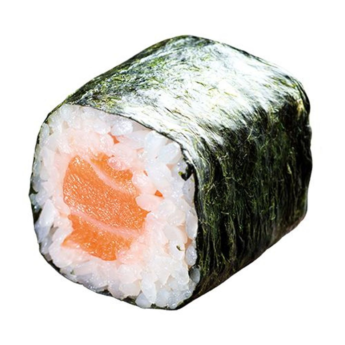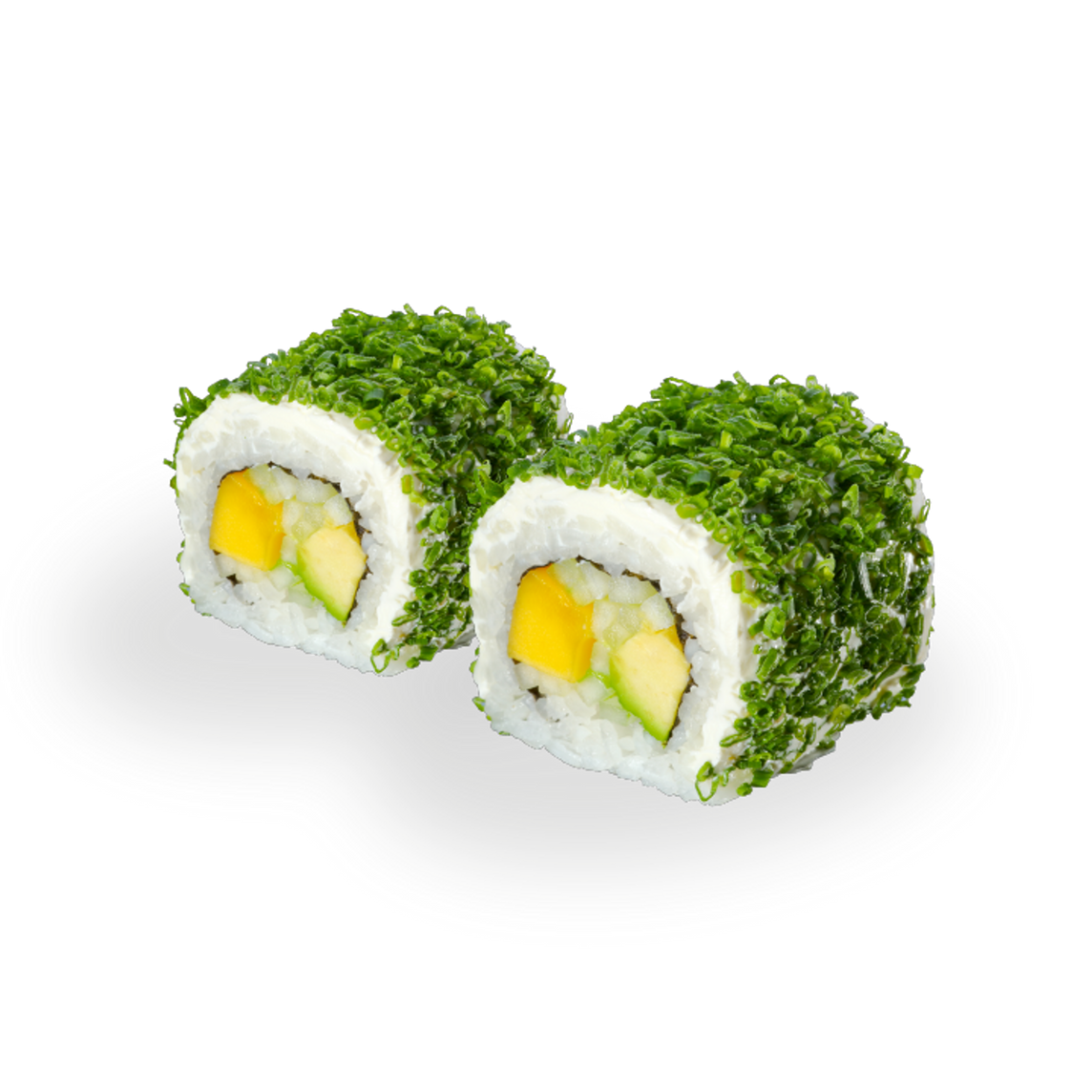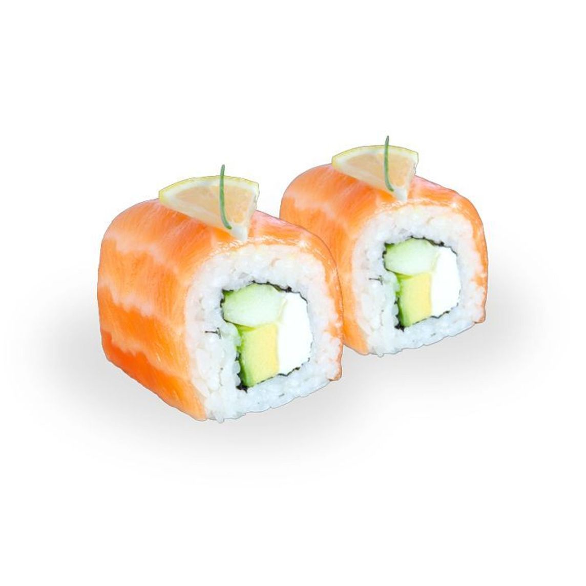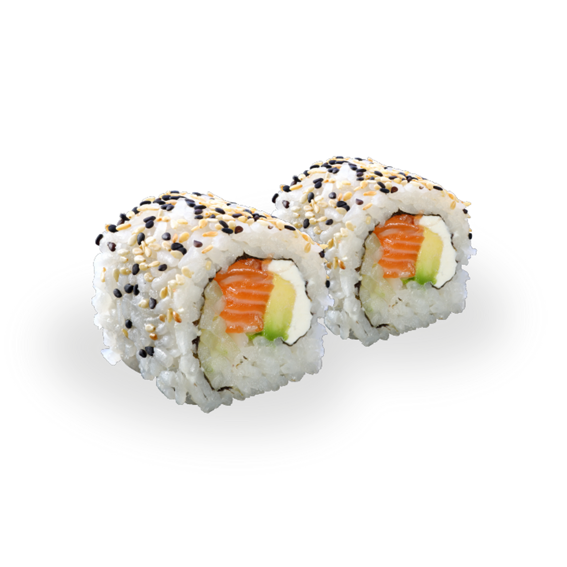 Con aguacate, pepino, cebollín y masago, salmón (40 g).