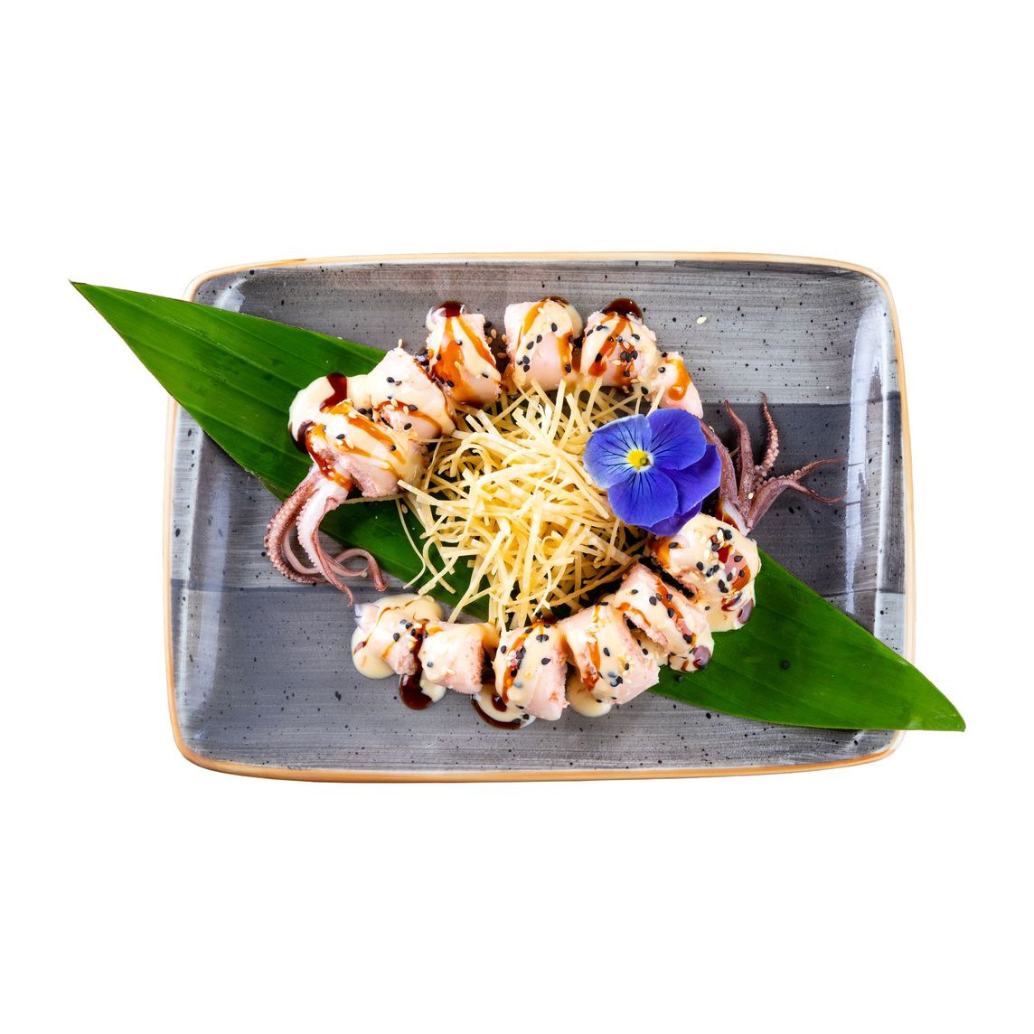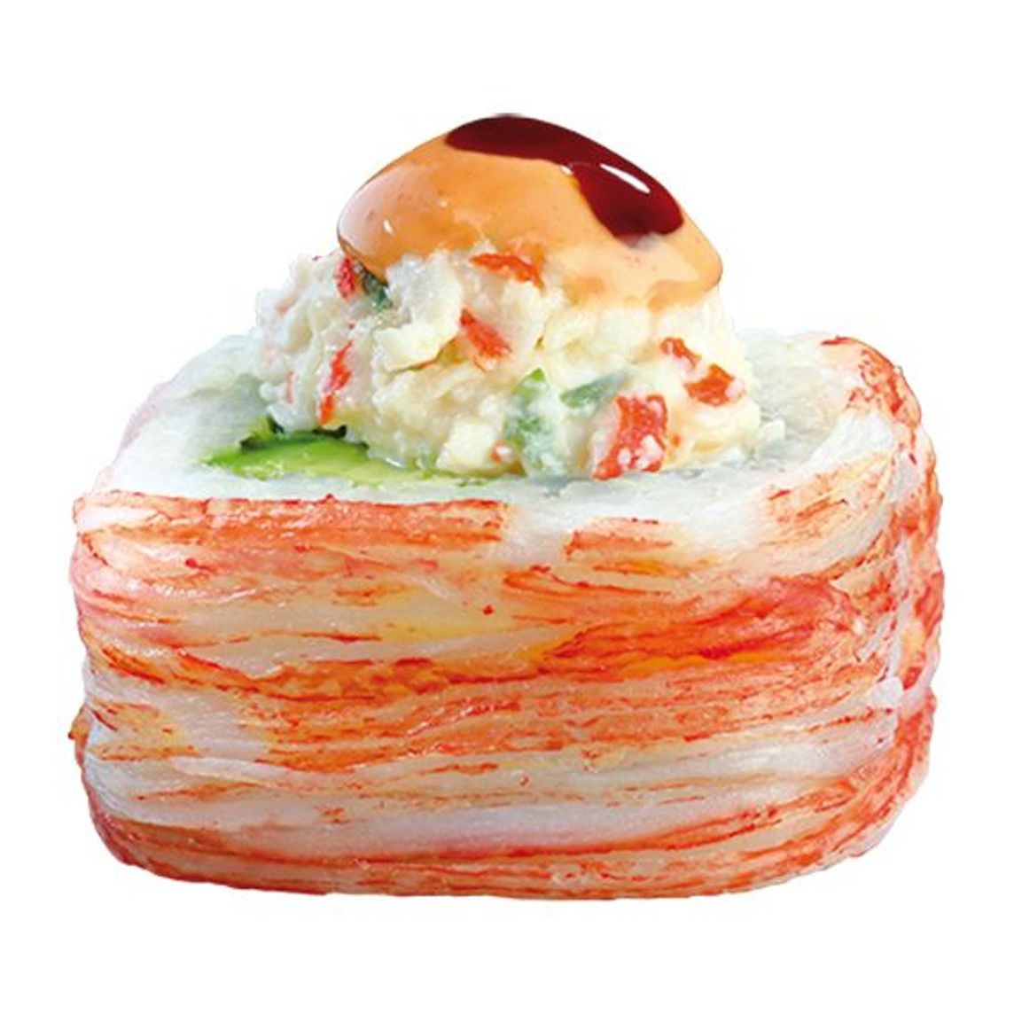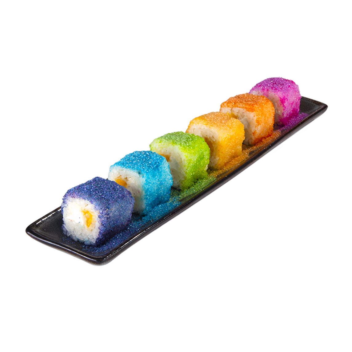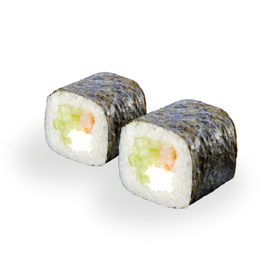 10 pzas. Topping: Pepino, tampico, camarón empanizado, tom-yum mayo y salsa de anguila. Por dentro: Cangrejo, aguacate y queso.