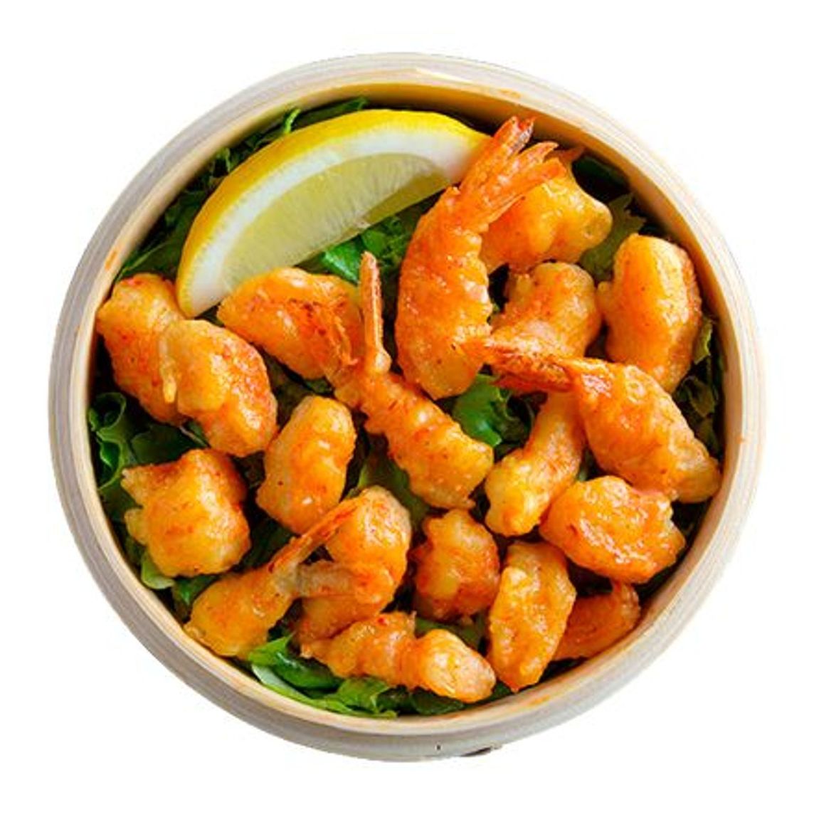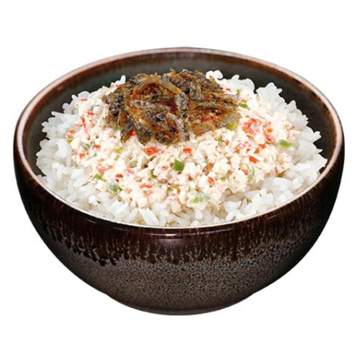 Arroz frito con verduras, huevo, camarón y cebollín. (45 g)