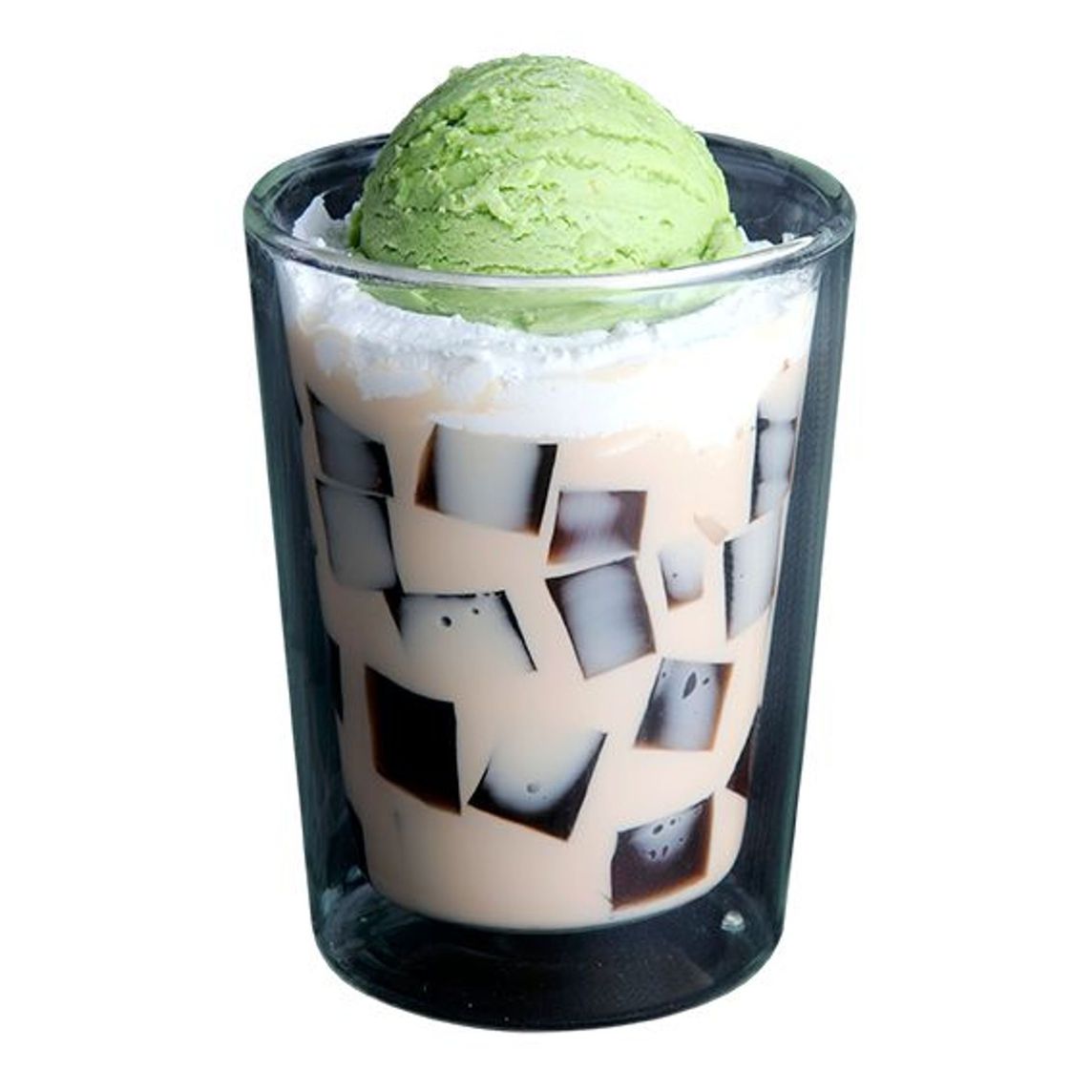 Cubos de gelatina con crema de licor de café y helado de matcha. (250 g)