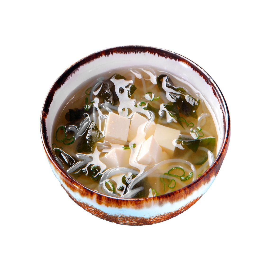 Fondo miso con harusame, tofu, alga y cebollín. (300ml)