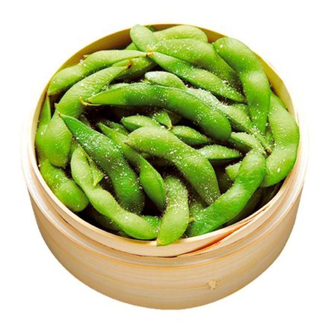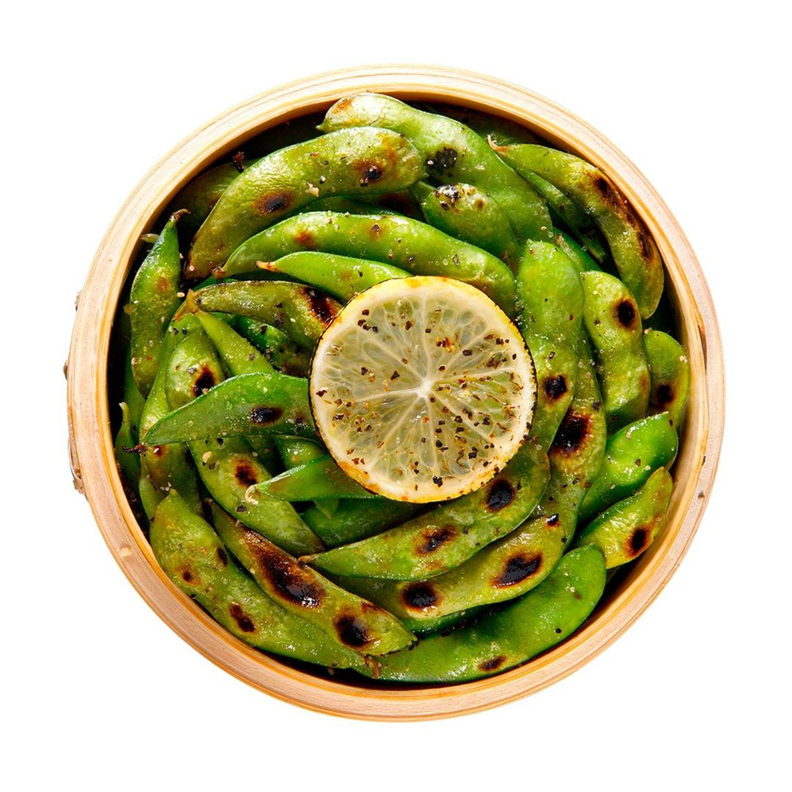Edamame a la plancha, sazonados con pimienta y limón. (220 g)