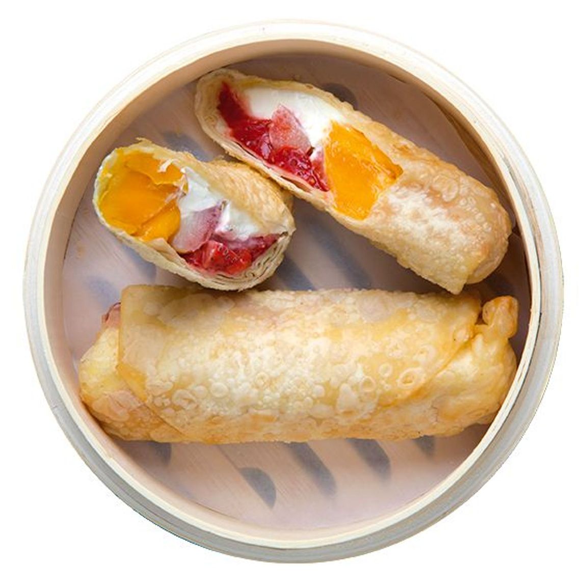 2 pzas. Rollo primavera relleno de mango, fresa y queso crema.