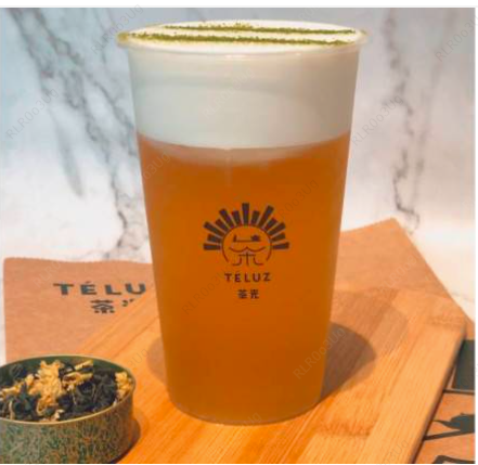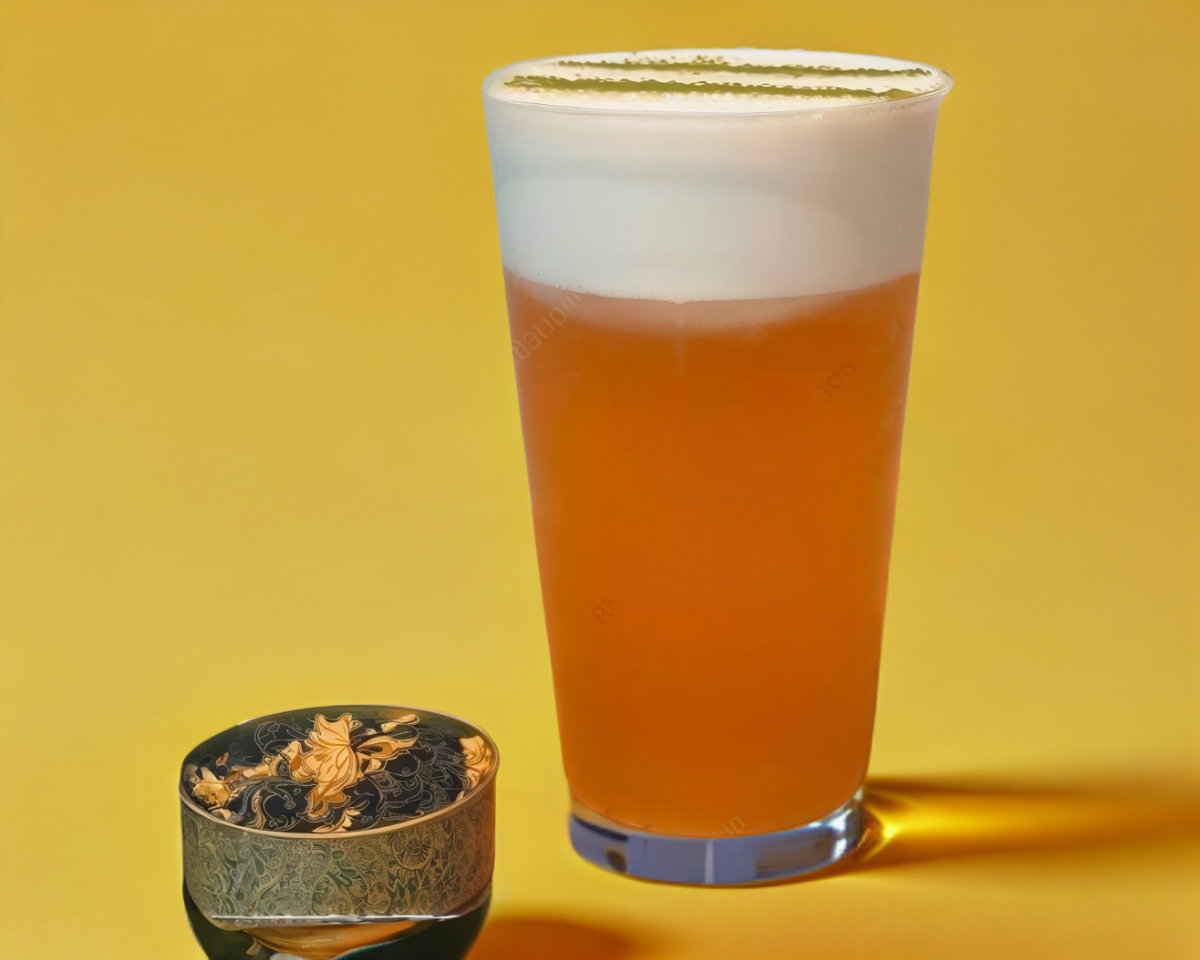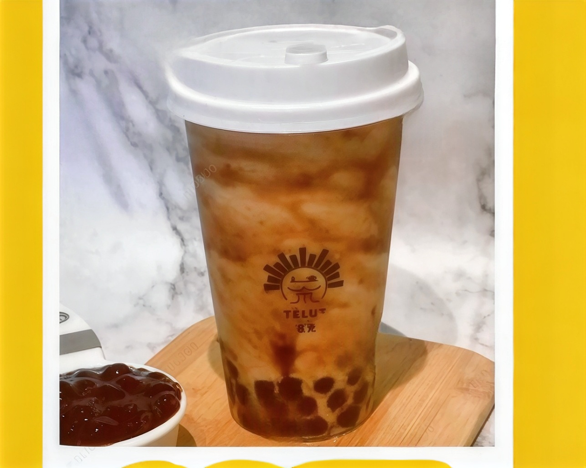 Té de jazmín, leche evaporada, mermelada de arroz dulce con tapioca blanca