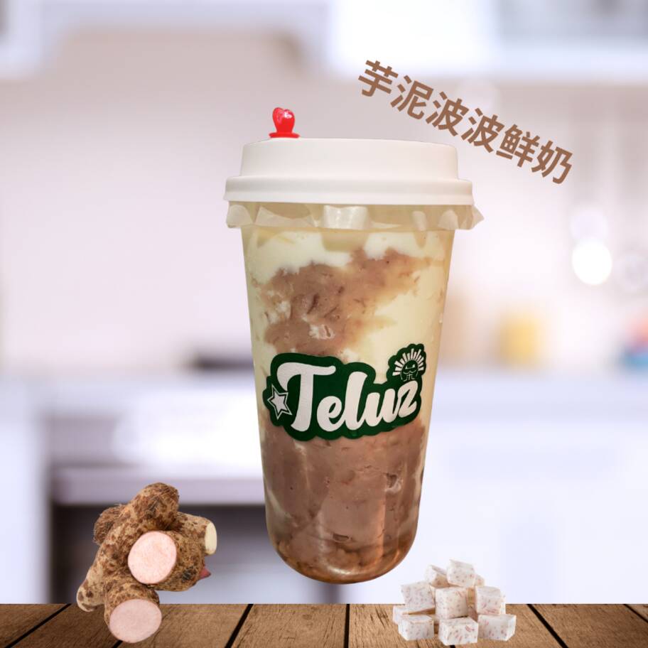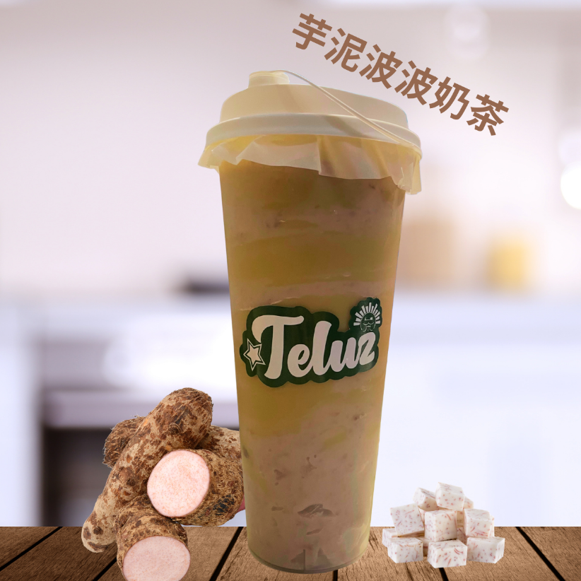 Puré de Taro Natural + Tapioca de taro natural + Té negro + Leche