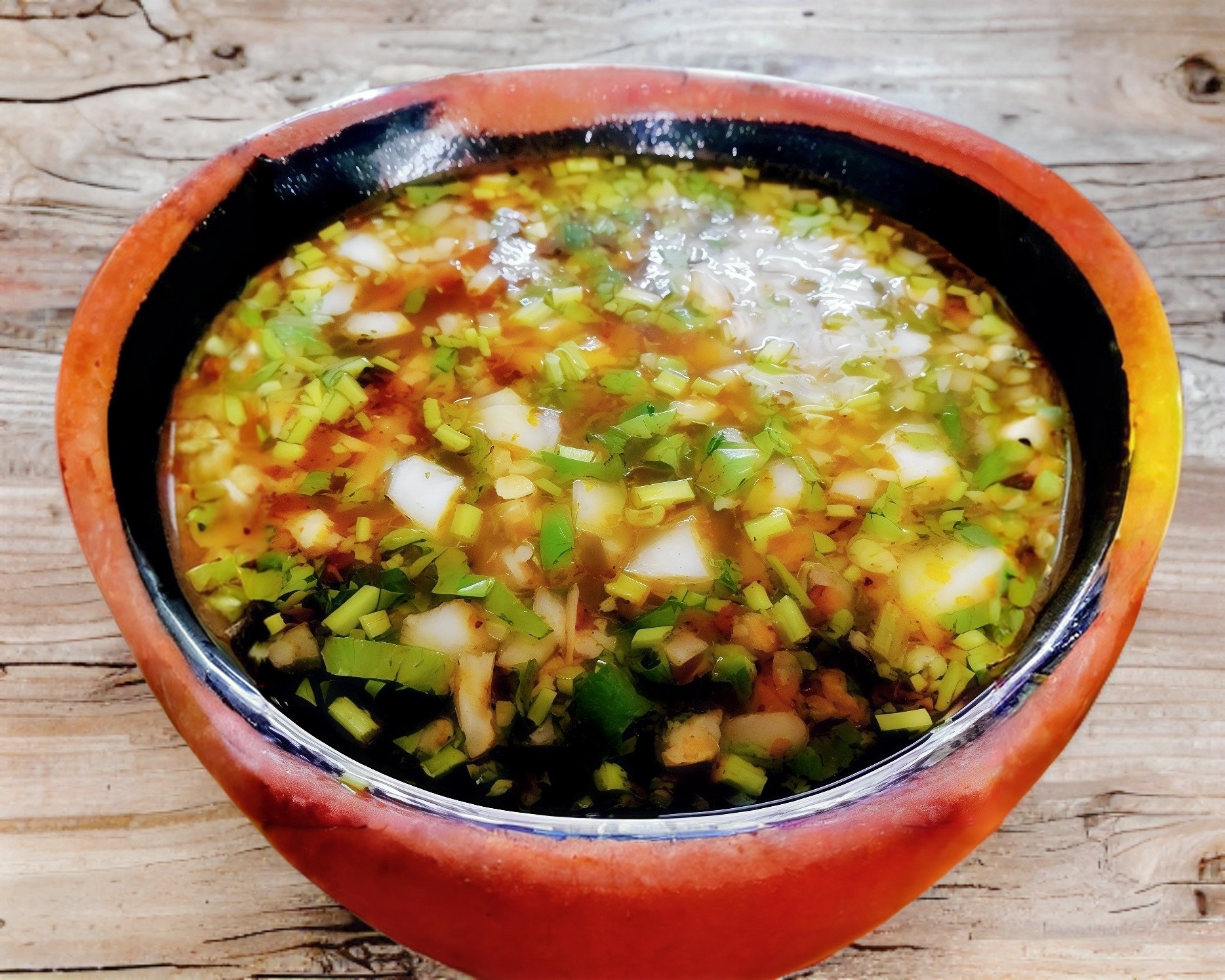 Es nuestro rico consomé de borrego con arroz y garbanzo, que podrás deleitar con salsa roja o verde y a la vez dar un toque de limón, claro, sin dejar de acompañarlo con su respectiva cebolla y cilantro.