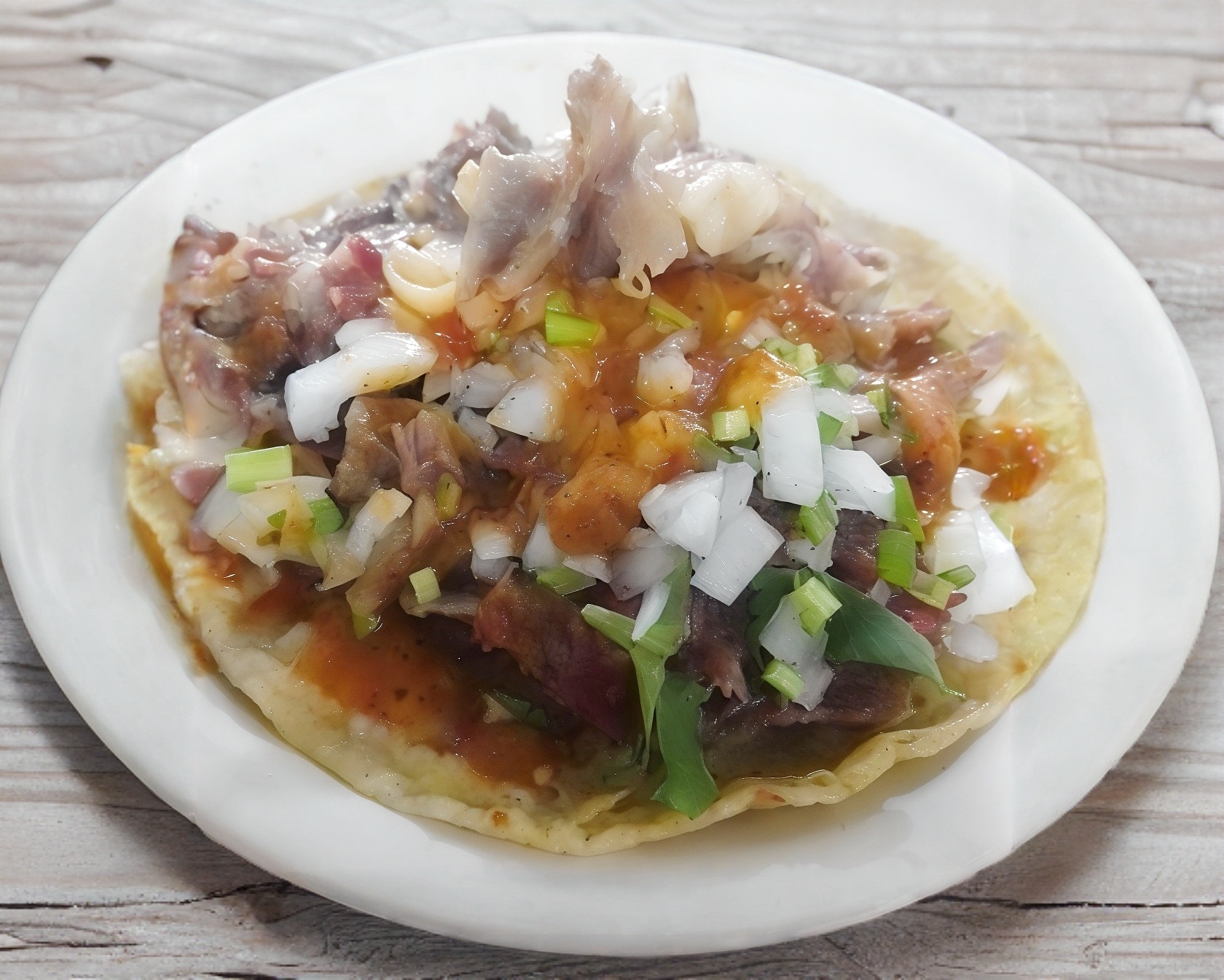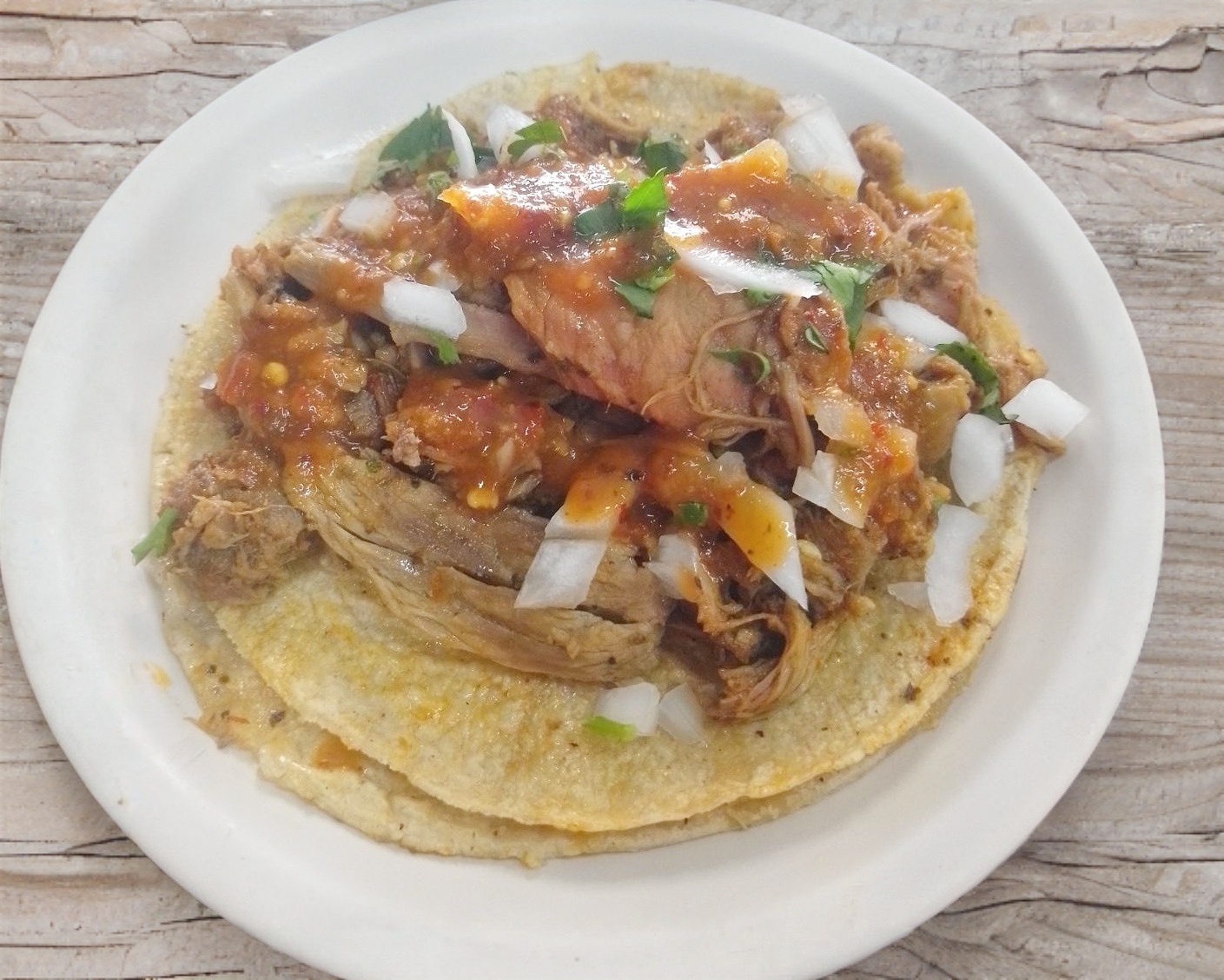 Una exquisita porción de pancita de borrego en tortilla de maíz, que podrás mezclar con la salsita de tu preferencia.