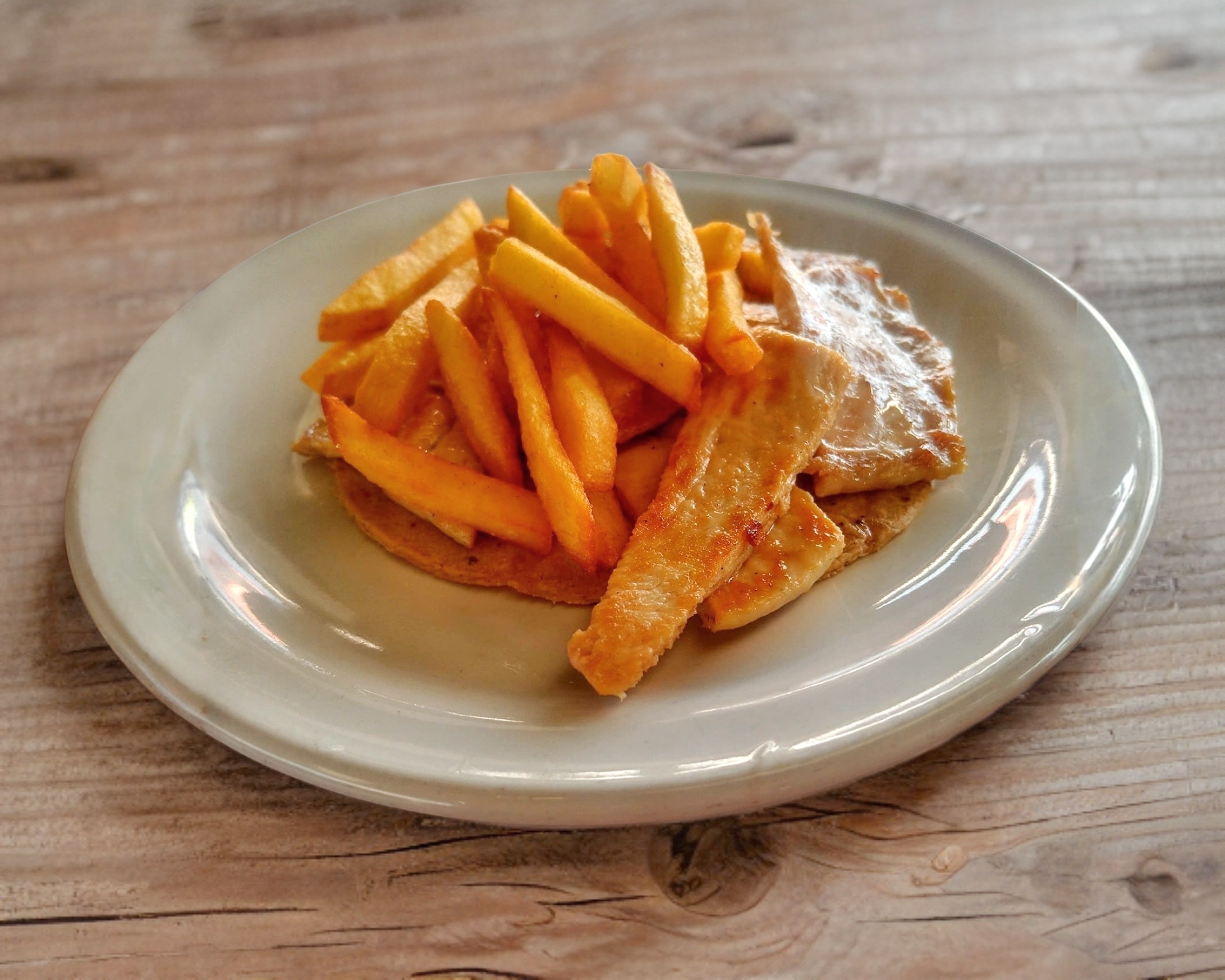 Pechuga de pollo en tortilla de maíz con ricas papas.
