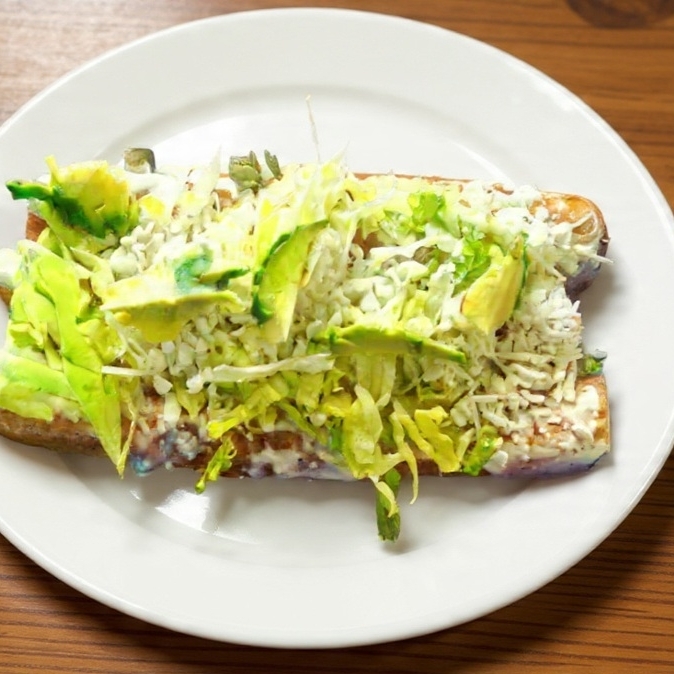 Es una rica flauta, acompañada por crema, lechuga, queso rayado y unas ricas rebanadas de aguacate.