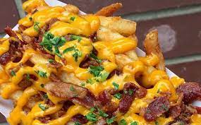 250 grs. de crujientes papas, bañadas de queso, tocino frito y cebollín.