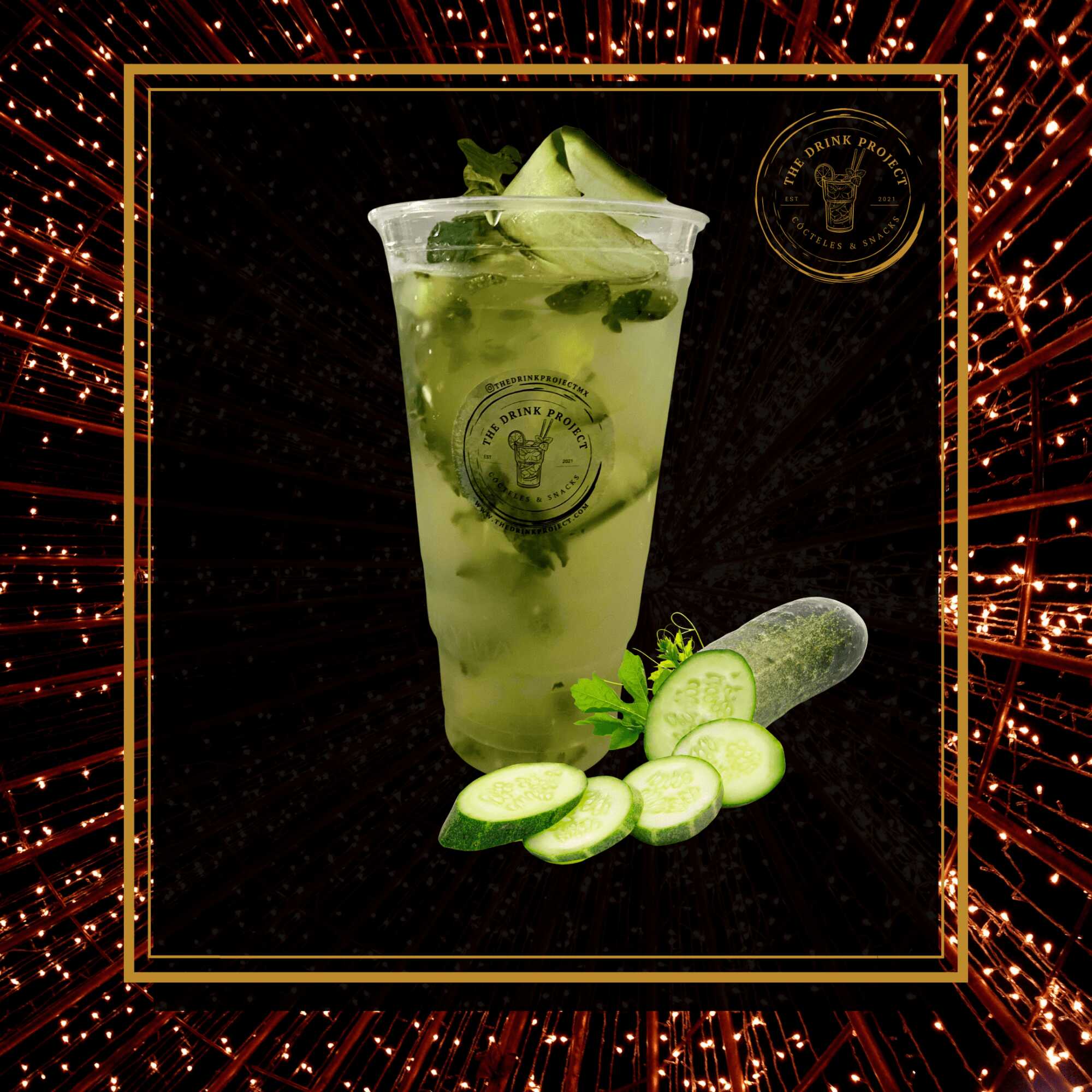Mojito de pepino con hierbabuena, pepino, agua mineral y hielo.