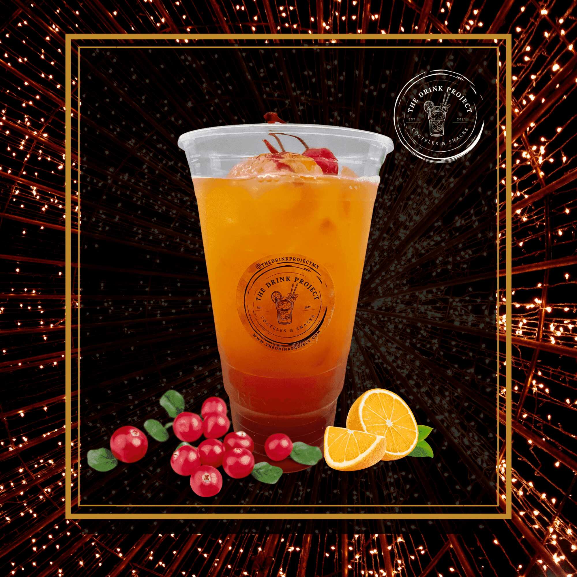 Vodka, licor de durazno, jugo de naranja, jugo de arándano y hielo.