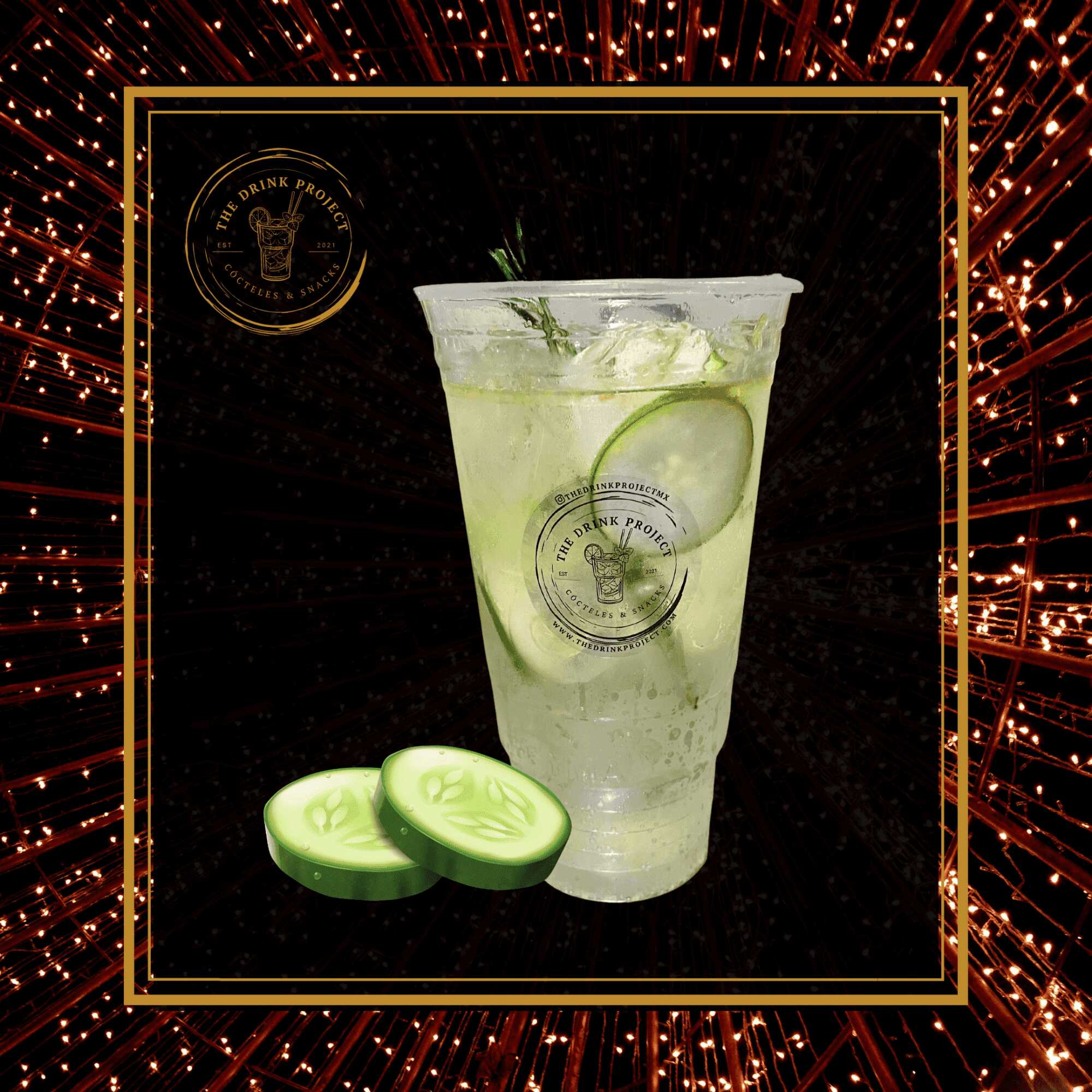 Gin, agua tónica, jugo de limón, pepino, romero y hielo.