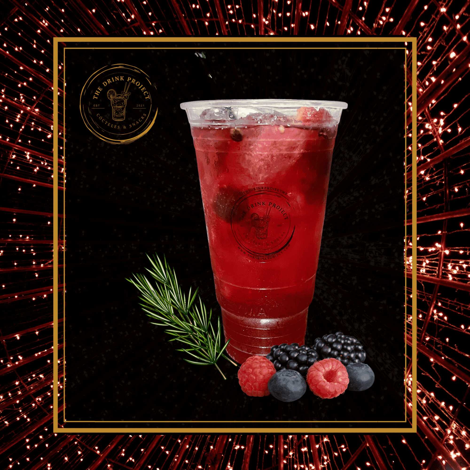 Frutos rojos, jugo de limón, agua mineral y hielo. Bebida sin alcohol