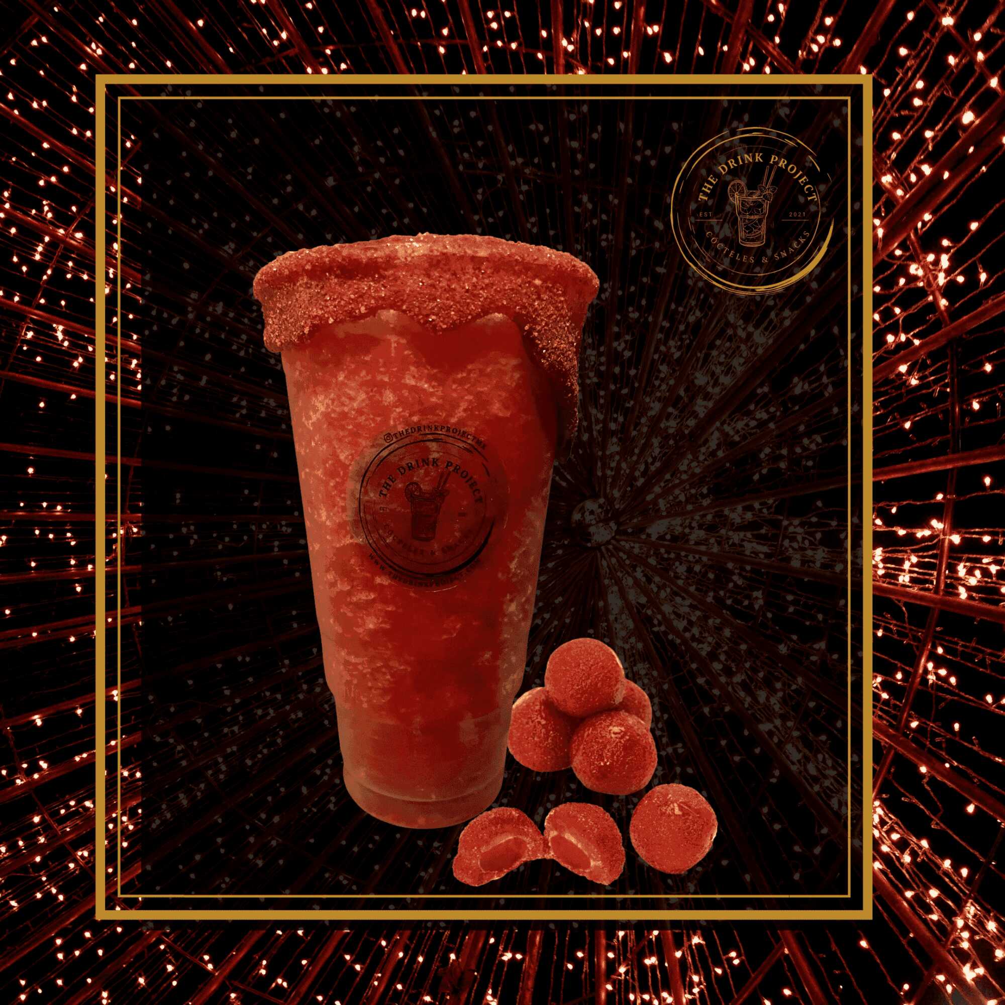 José Cuervo, sandía, fresa, picafresa, limón, chamoy y hielo frappe.