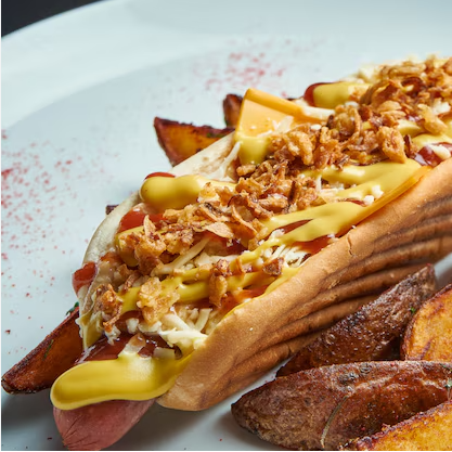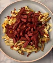 Deliciosas papas fritas acompañadas de trozos de salchicha dorada, preparadas con queso amarillo, crema y catsup.