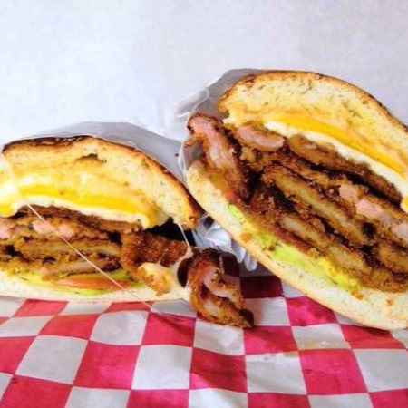 Milanesa, queso amarillo, queso panela, quesillo, frijoles, mayonesa, aguacate, jitomate, cebolla, rajas con chipotle y lechuga.