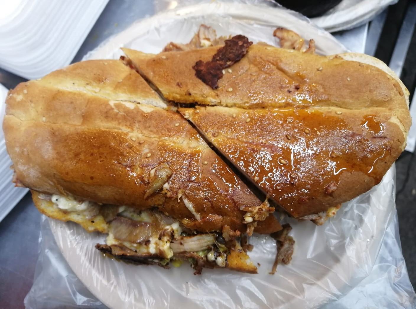 ,pan de 15 cm, frijoles, mayonesa, jitomate, aguacate, quesillo CARNE MOLIDA Y TOCINO