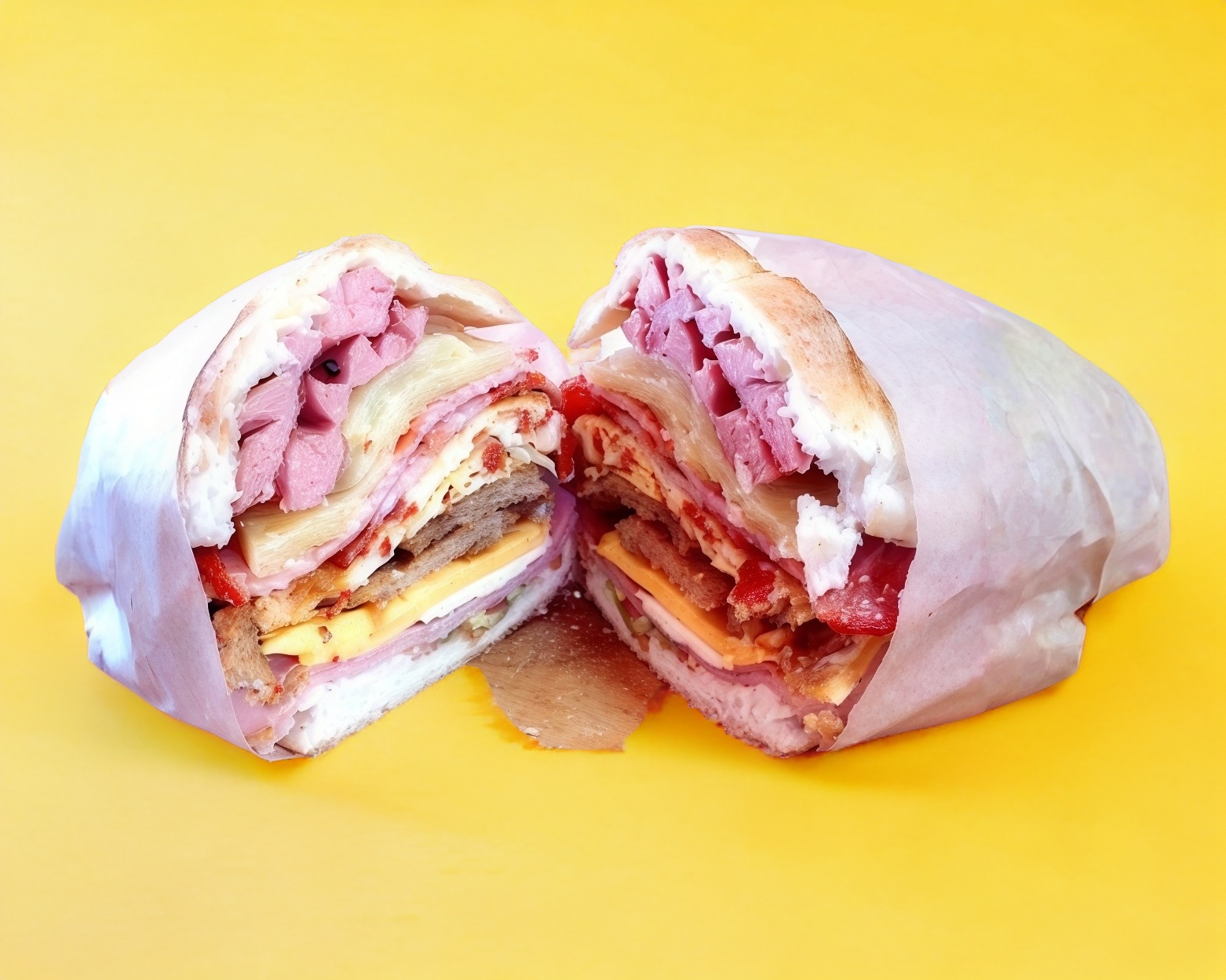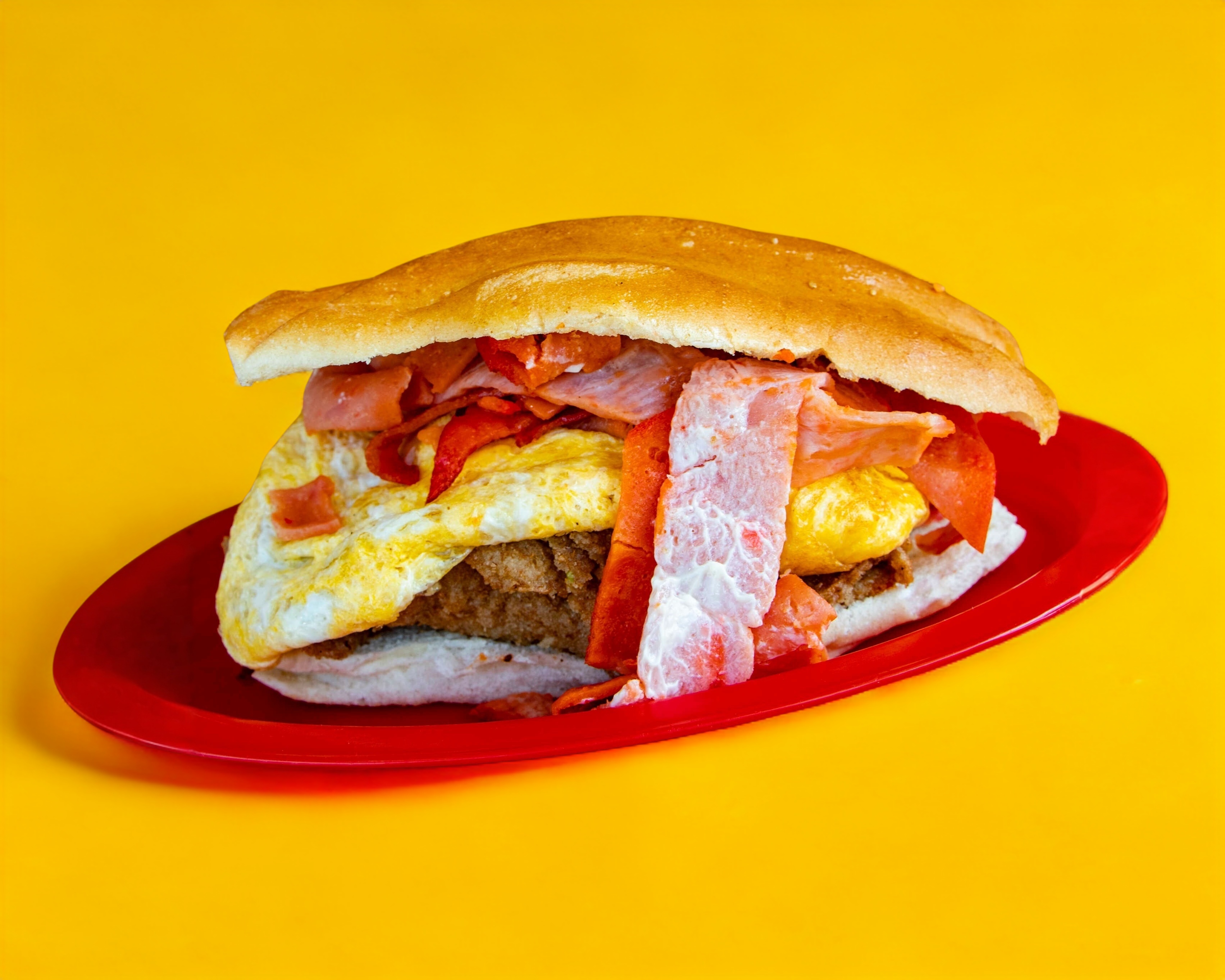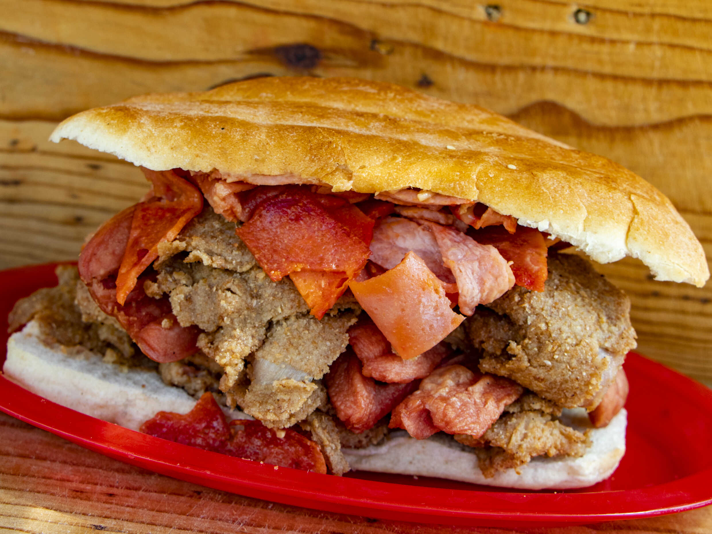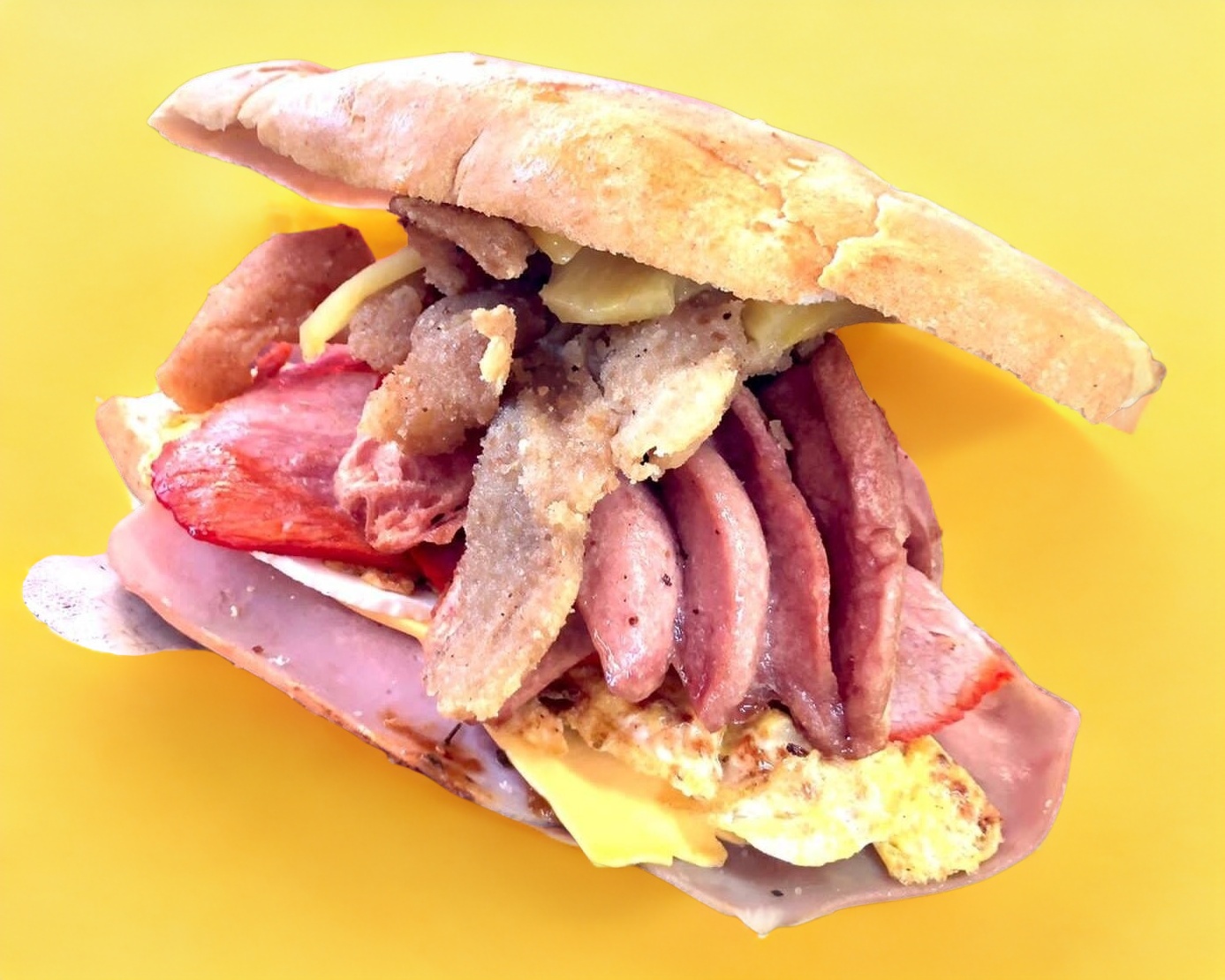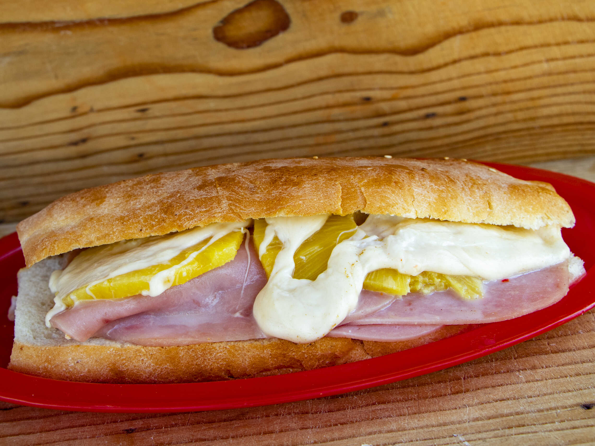 Chuleta, piña, queso Oaxaca, frijoles, mayonesa, jitomate y aguacate.