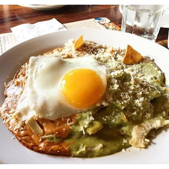 Tortilla gigante de masa rellena de chicharrón prensado, primer cama de salsa, huevo estrellado, queso canasto, lechuga y crema.