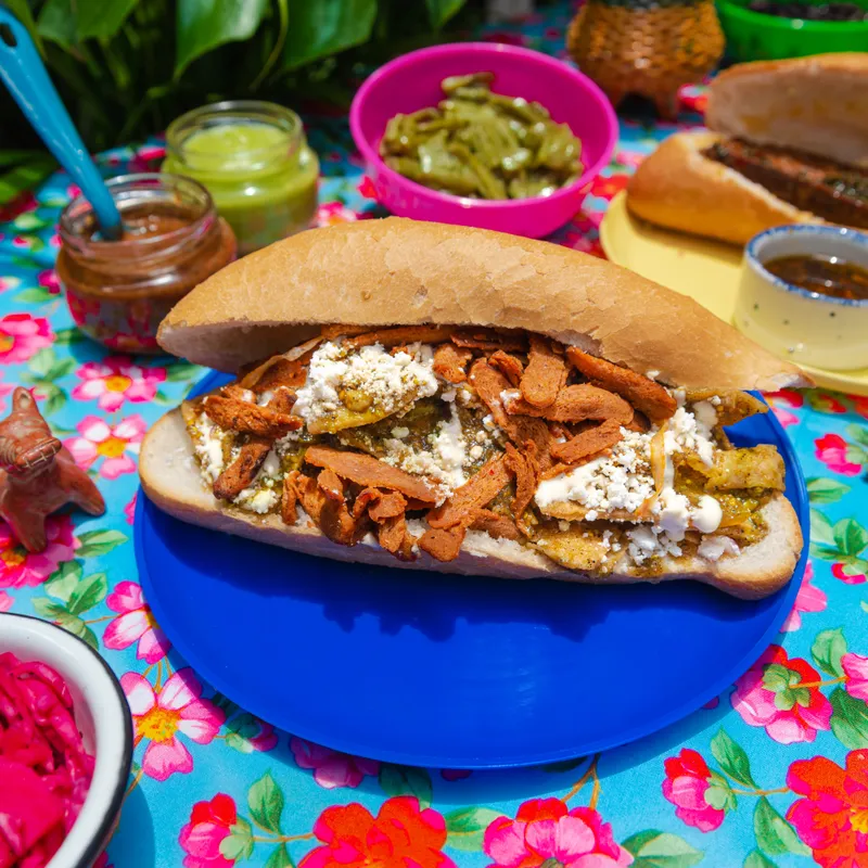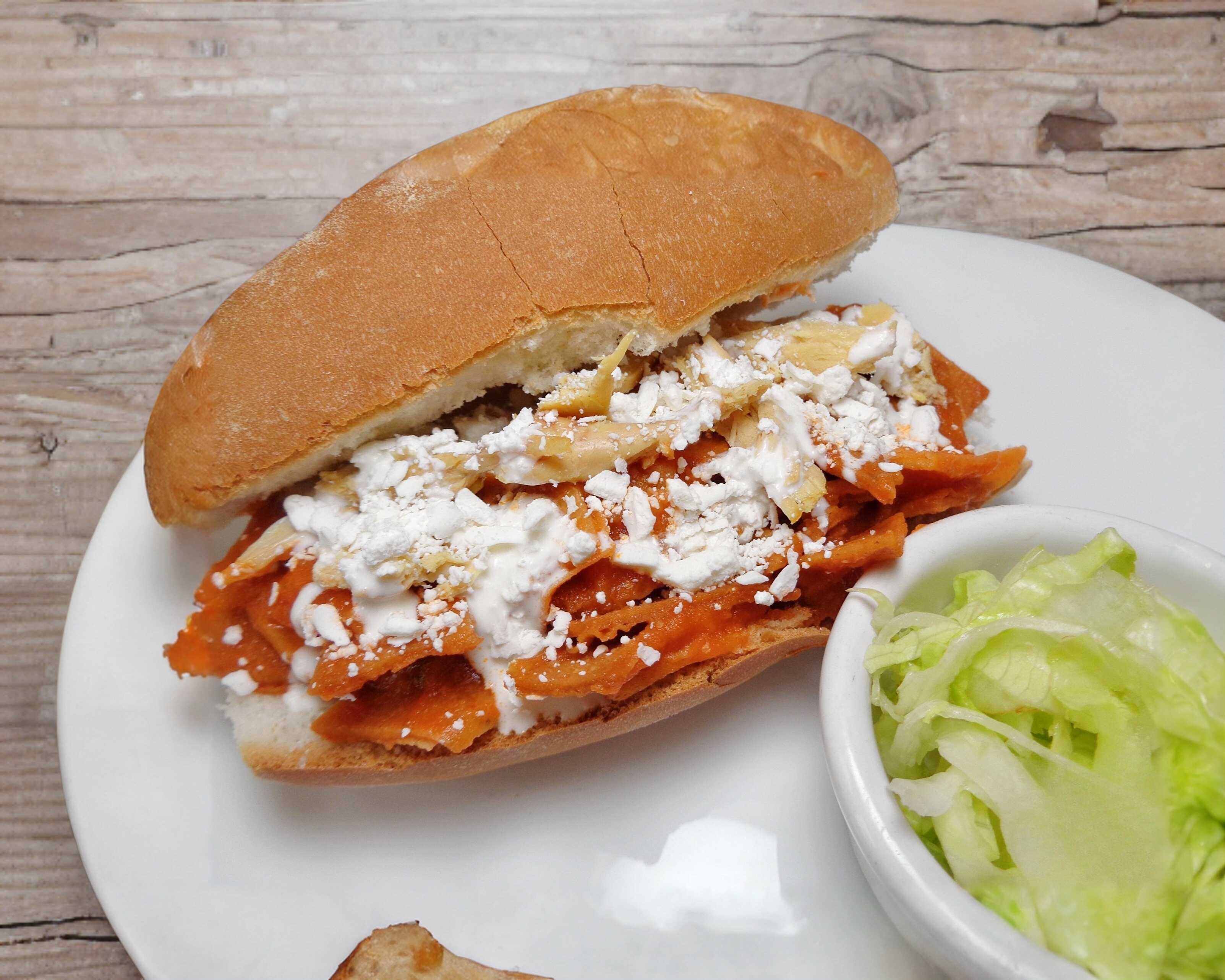 Elige proteína para tu torta de chilaquiles y una bebida.