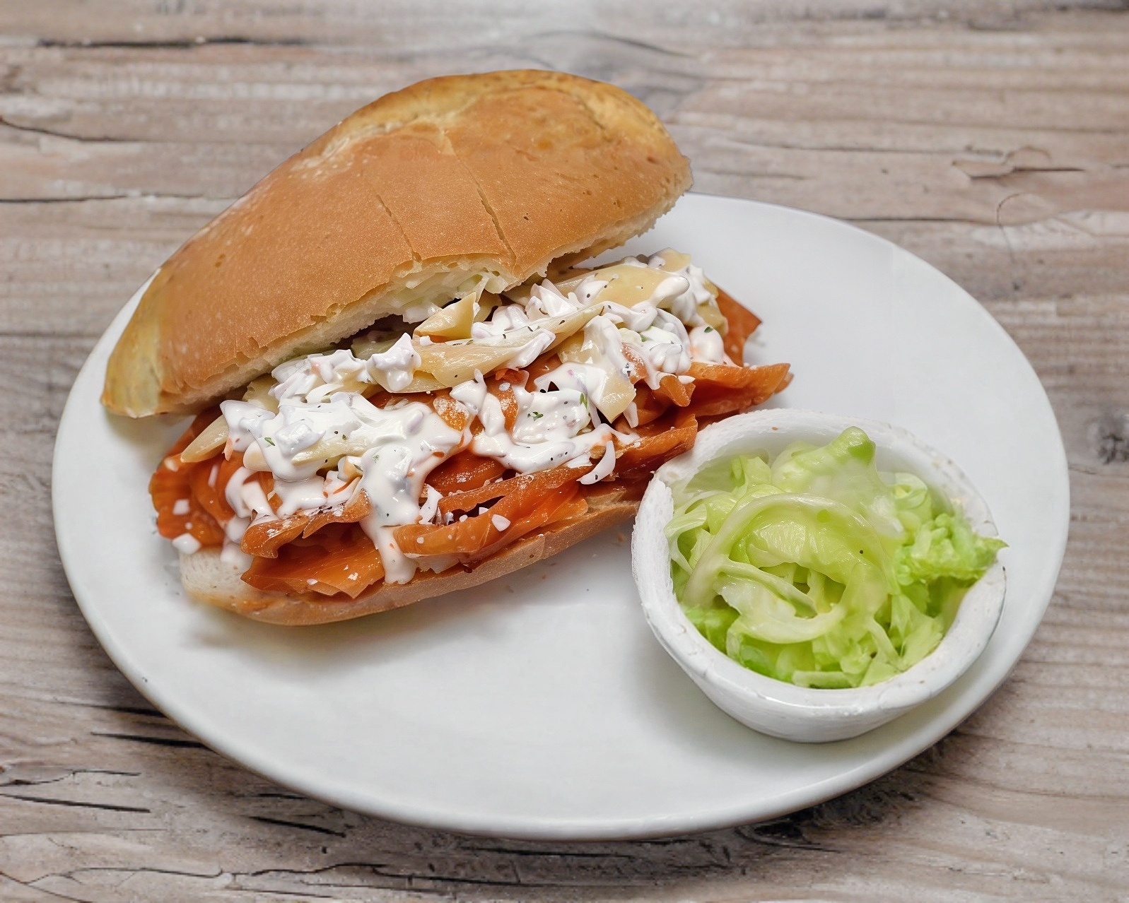 Pan de 25 cm con crema, cebolla, cilantro y queso.