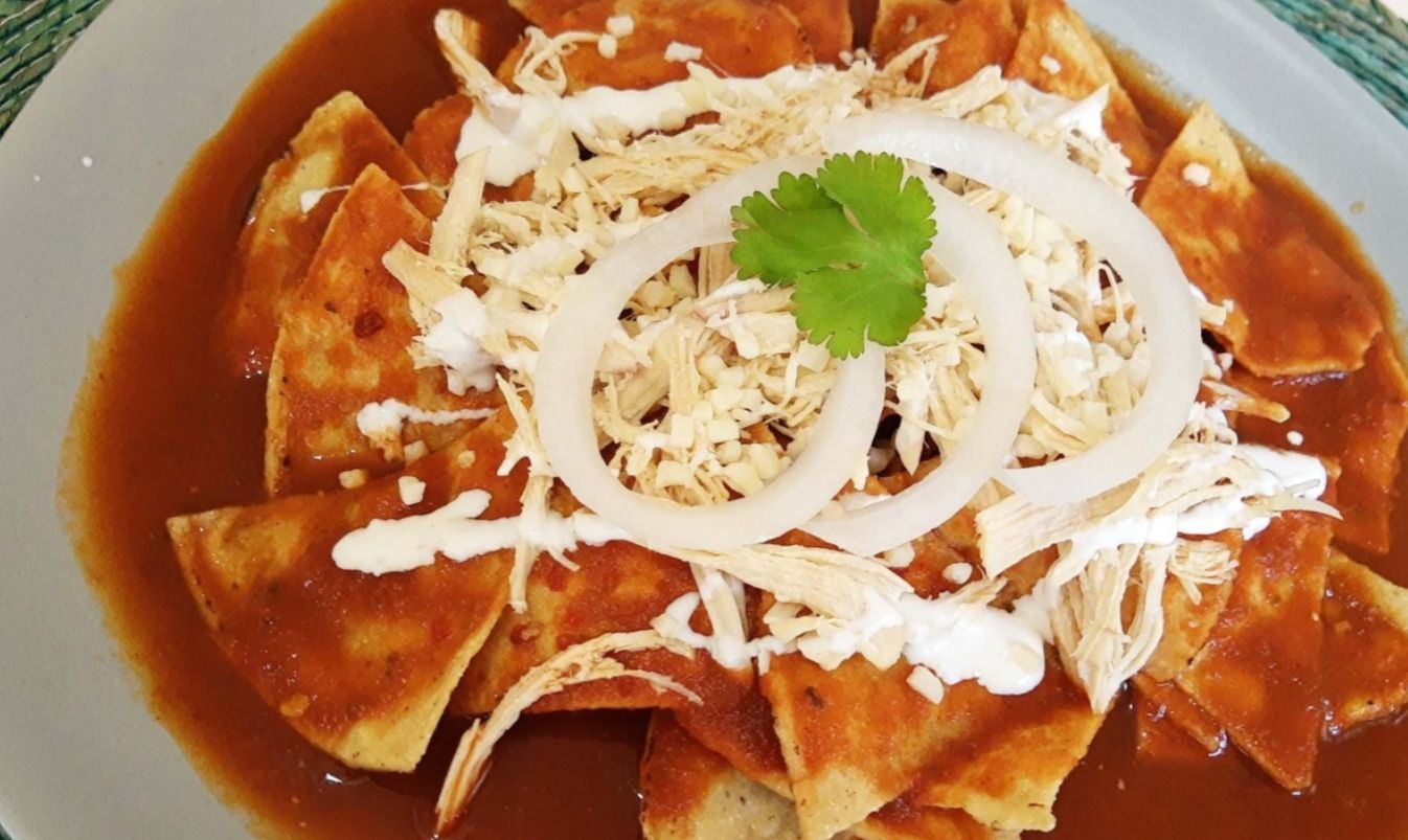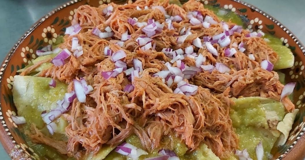 Sabrosos chilaquiles en la salsa de tu elección verde o roja, acompañados con carne al pastor y 1 bolillo.