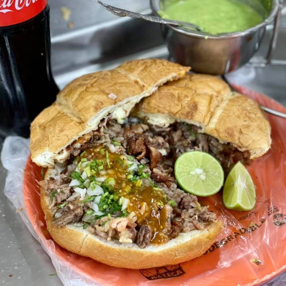 Deliciosa torta de suadero en bolillo estándar.
