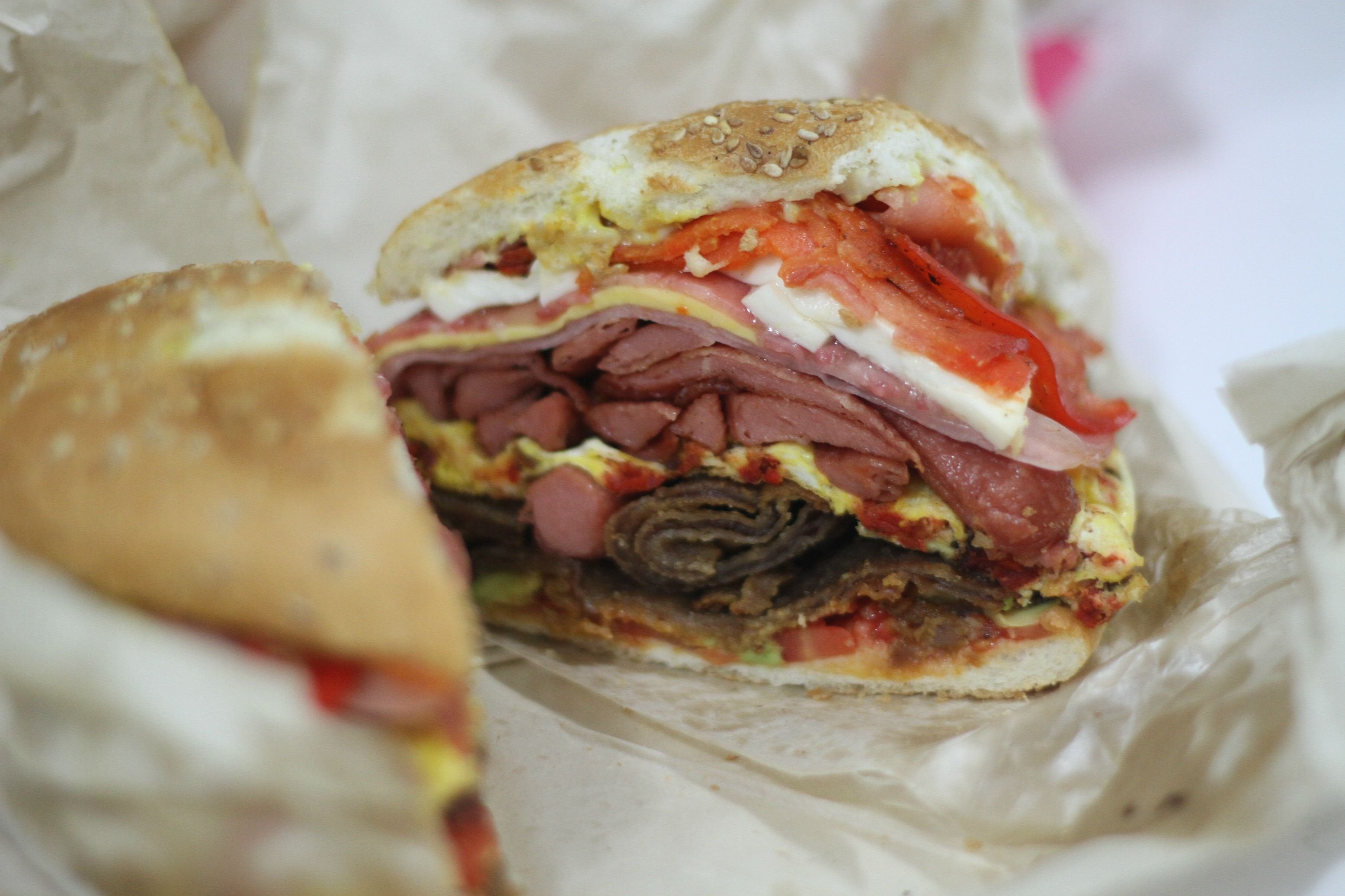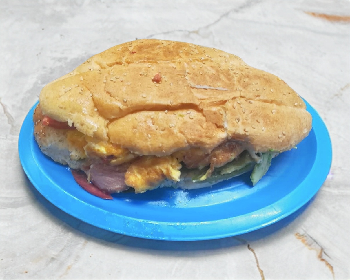 Huevo, tocino, quesillo, aguacate, jitomate, cebolla, mayonesa, chipotle o rajas