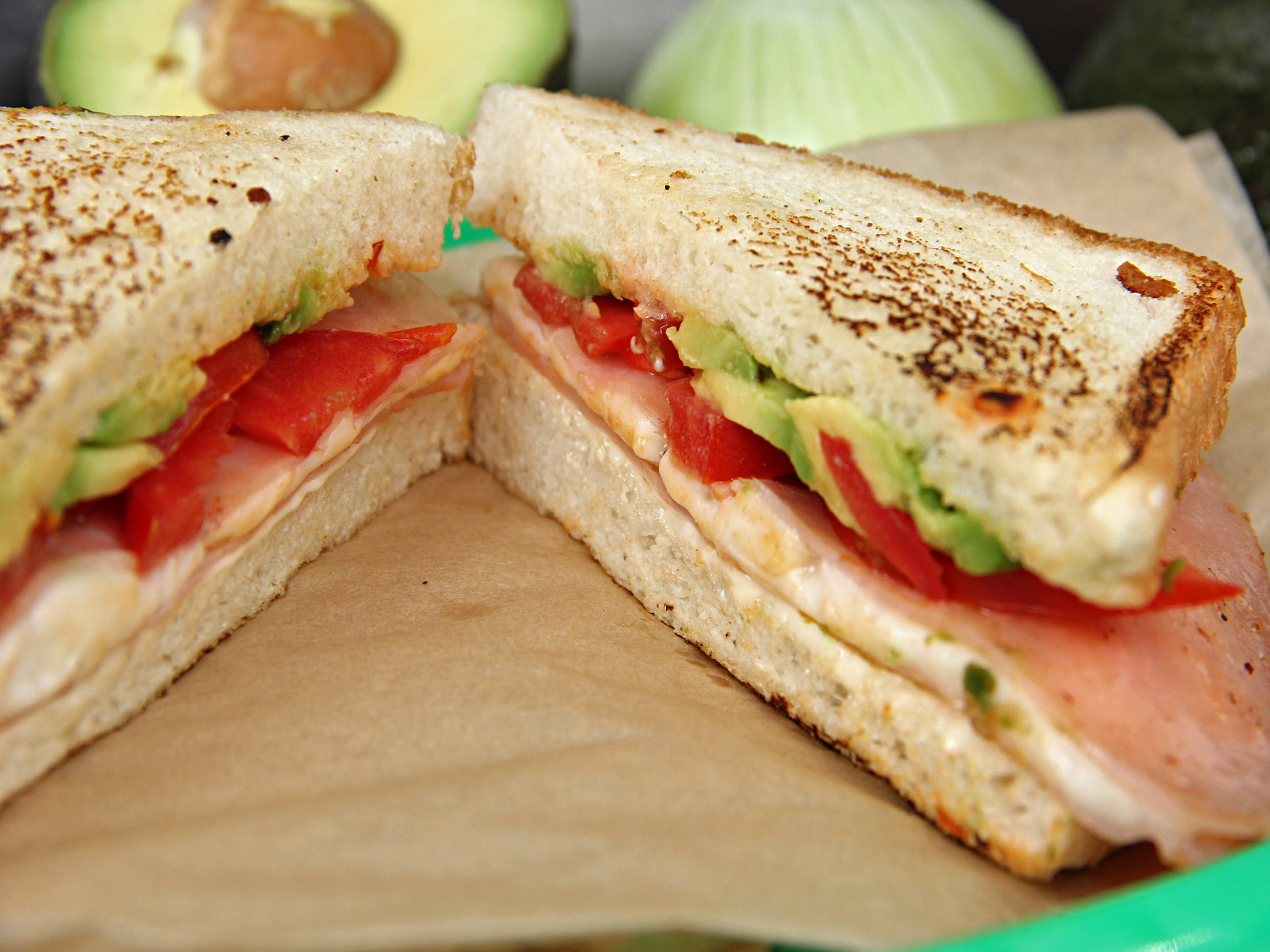 Jamón americano, aguacate, jitomate, mayonesa, chipotle o rajas