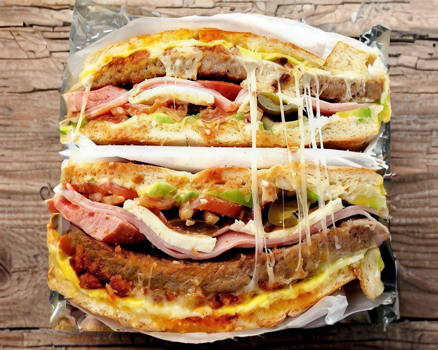 Jamón, queso amarillo y quesillo con rajas o chipotle.