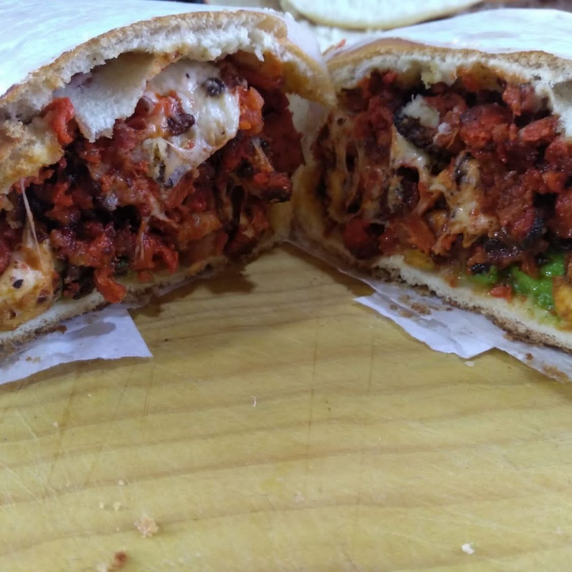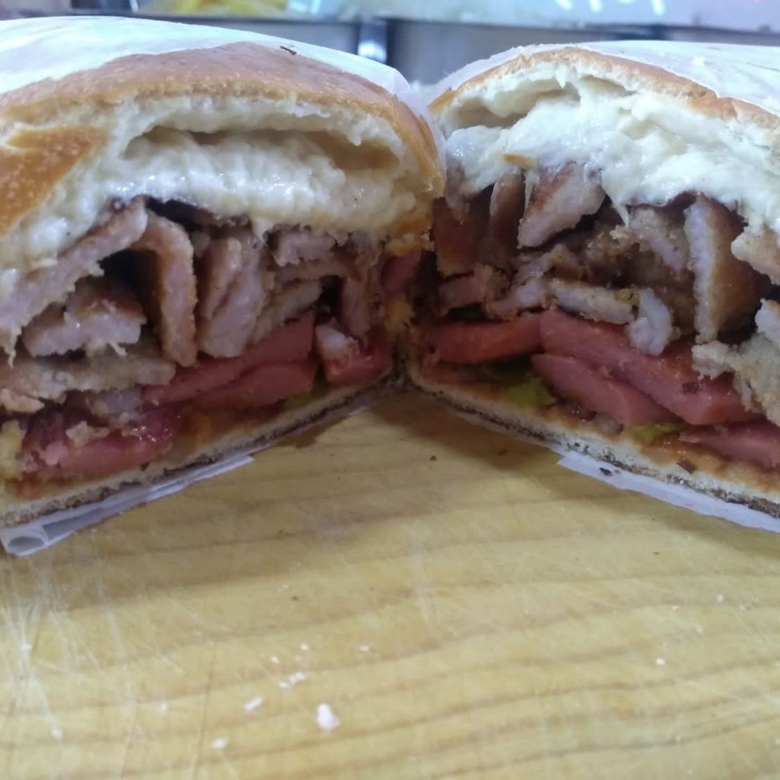 Milanesa, queso, mayonesa, aguacate, jitomate y cebolla