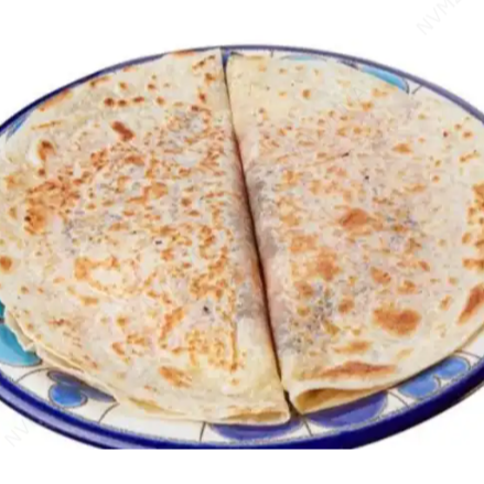 Tortilla de harina con jamón, queso amarillo, quesillo con jitomate, jalapeños, cátsup y cebolla al gusto.