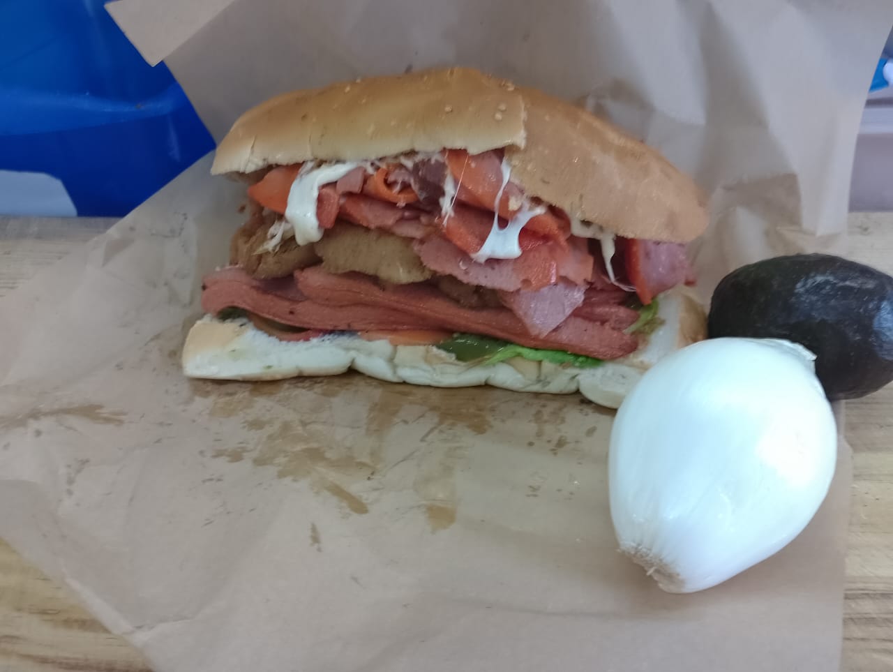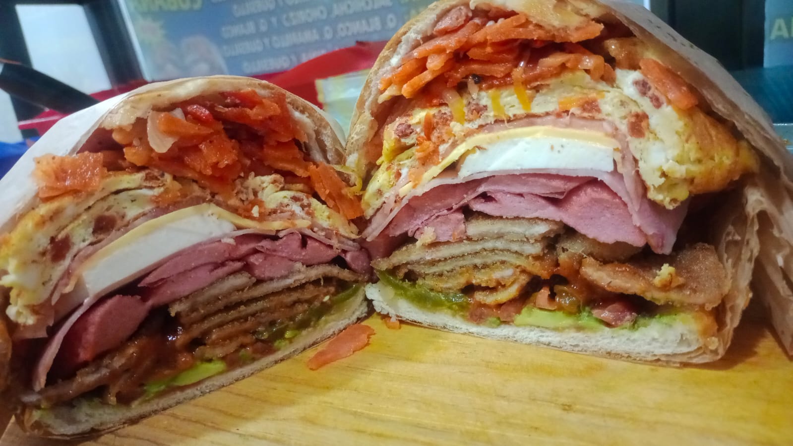 Telera rellena de todo los ingredientes.