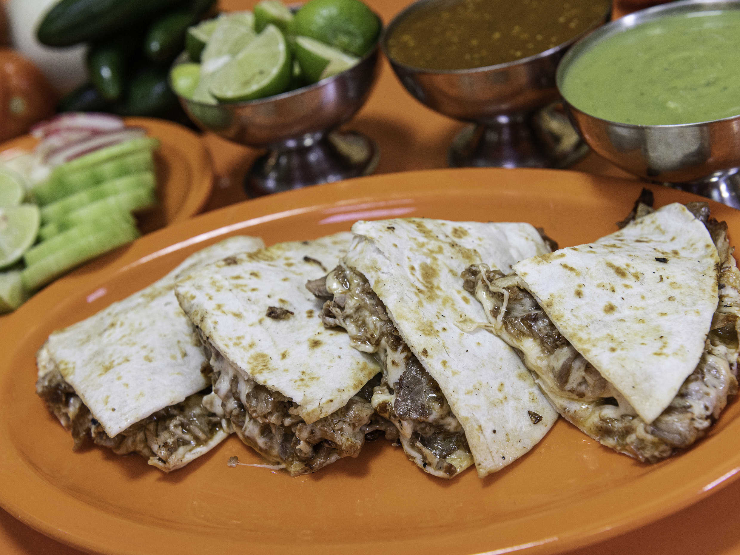 Medio Kilo de Carne, incluye, tortillas, limones, piña, y pepinos.