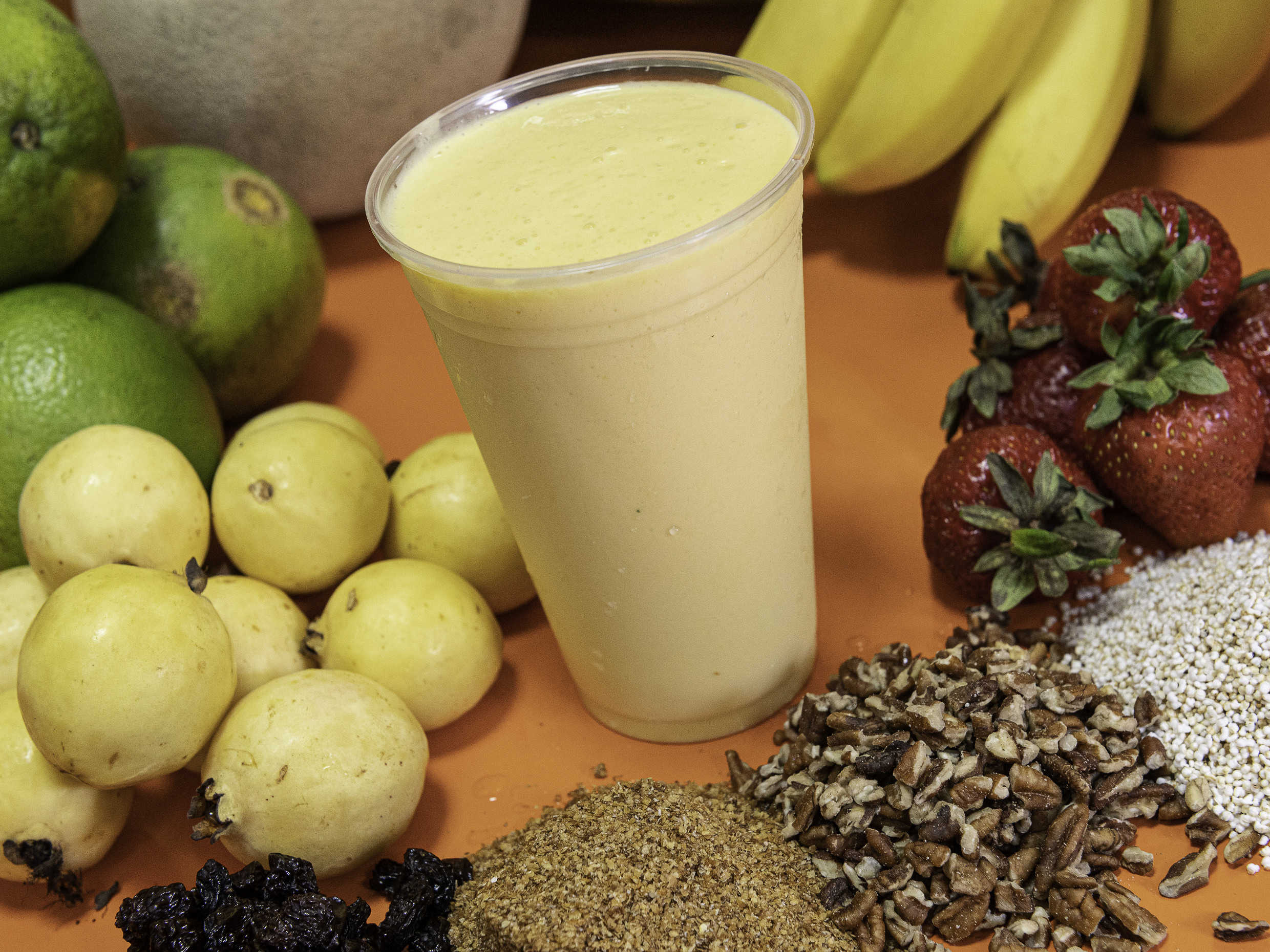 Jugo de naranja, piña, guayaba, miel y limón.