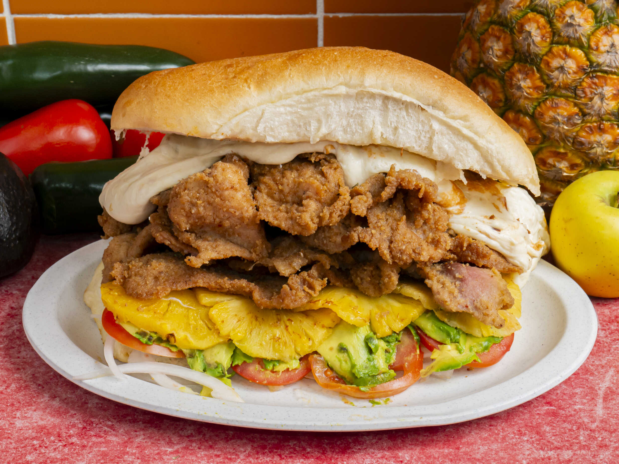 Milanesa, queso oaxaca, y piña.